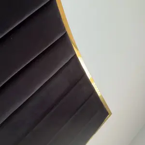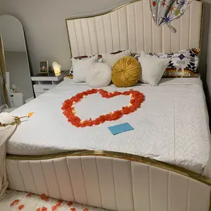 Upgrade your bedroom with the AMERLIFE 61.4" Queen/King Size Platform Bed Frame with Golden Plating Trim! This modern bed frame boasts a luxurious design that will elevate any indoor space.