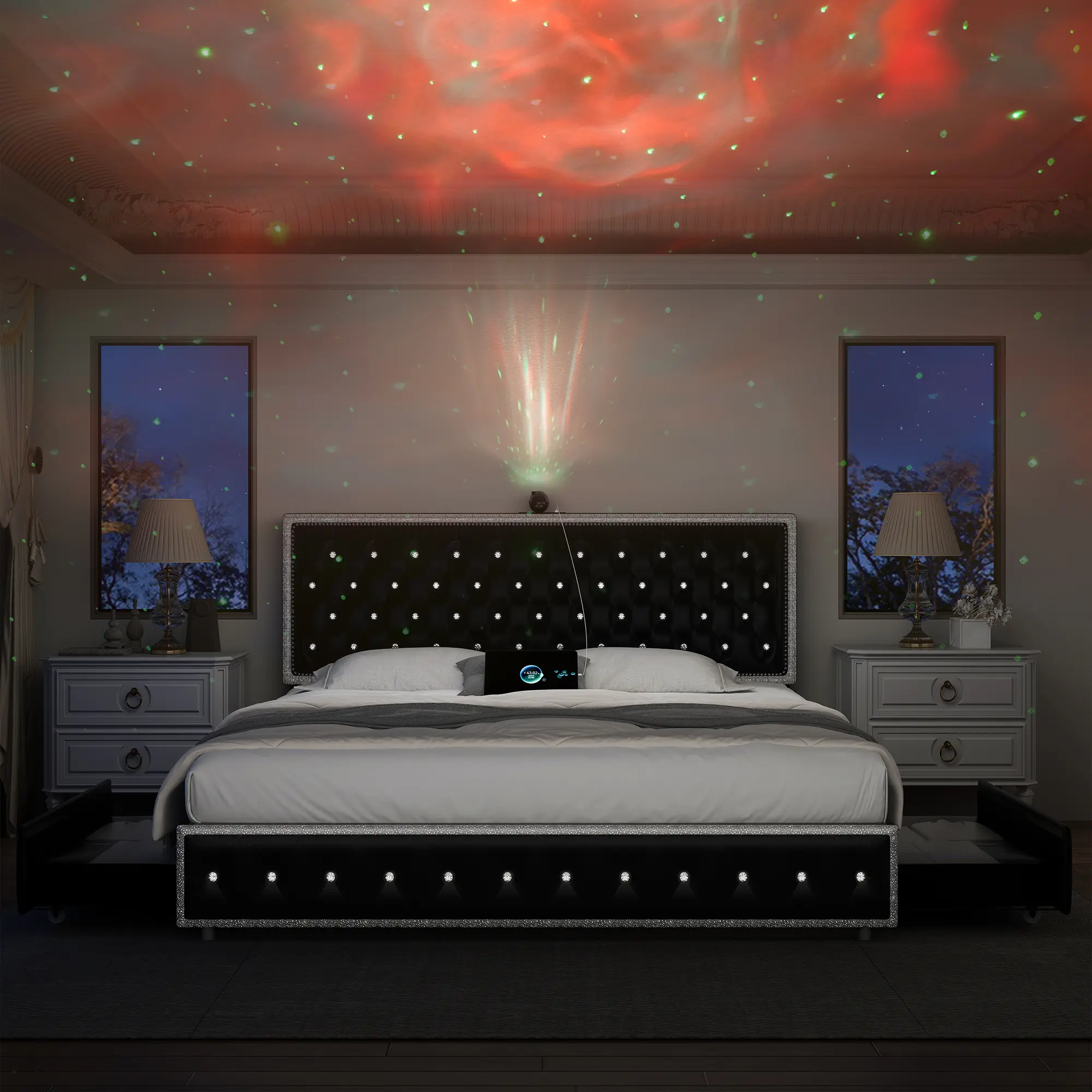 Create a dreamy bedroom vibe with over 60,000 RGB colors, starry sky and aurora effects. Features Bluetooth music sync, 8 white noise modes, timer settings, and energy-efficient LED lighting—perfect for sleep, relaxation, or mood lighting.