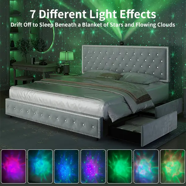 2. This is the introduction of the Starlight bed frame without drawers, which makes it easier to clean and sanitize under the bed. Available in 3 sizes, 2 materials and 4 colors.