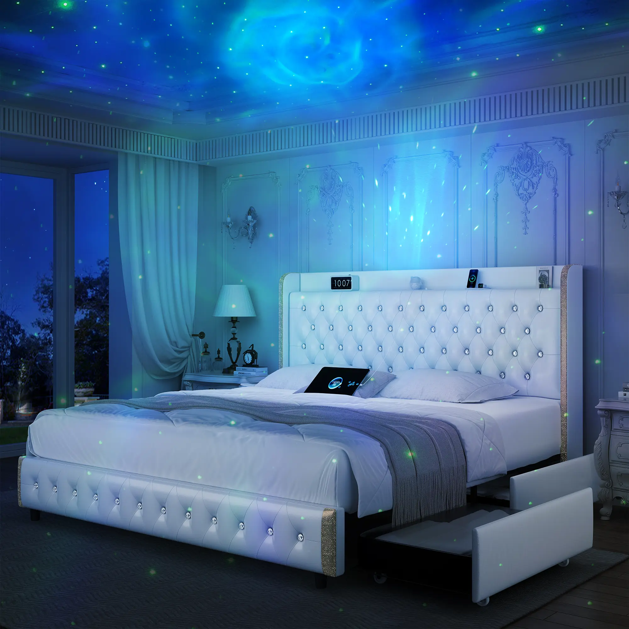 ·Customizable LED Lighting:Over 60,000 colors and multiple modes create brilliant starry skies and auroras to illuminate your bedroom. 8 white noise and Bluetooth music synchronization create a dynamic atmosphere. Energy efficient lighting is bright and economical.
