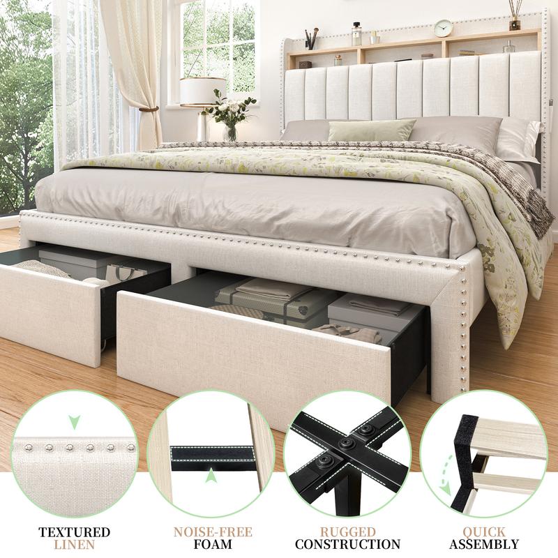 Upholstered Beds with Storage Headboard