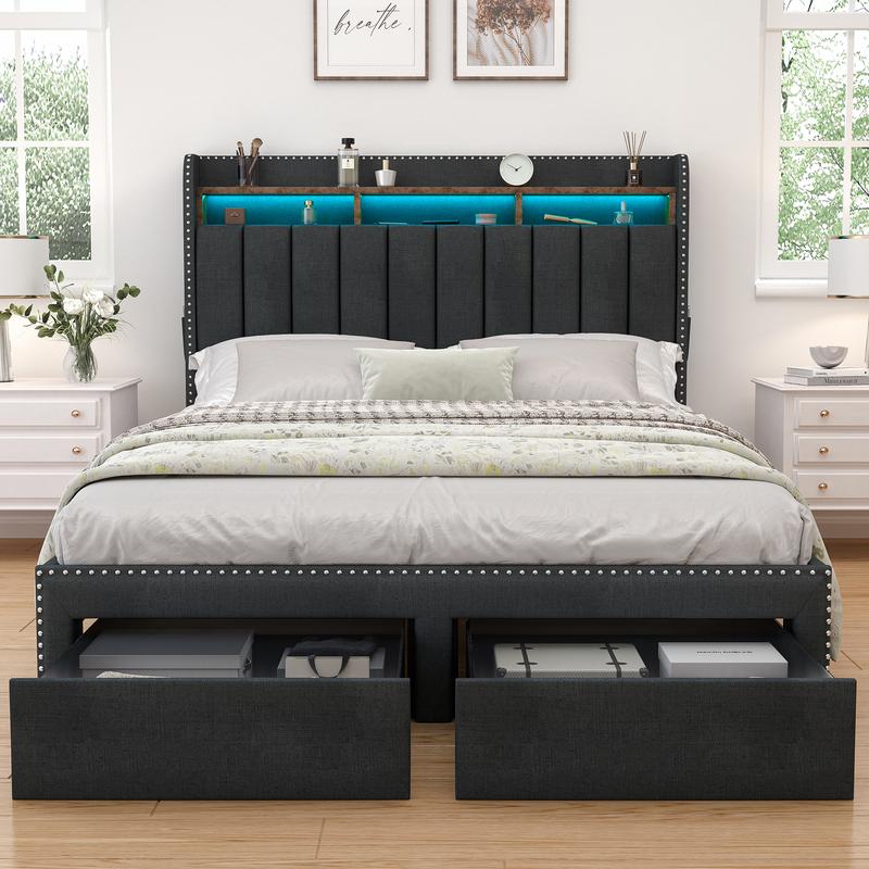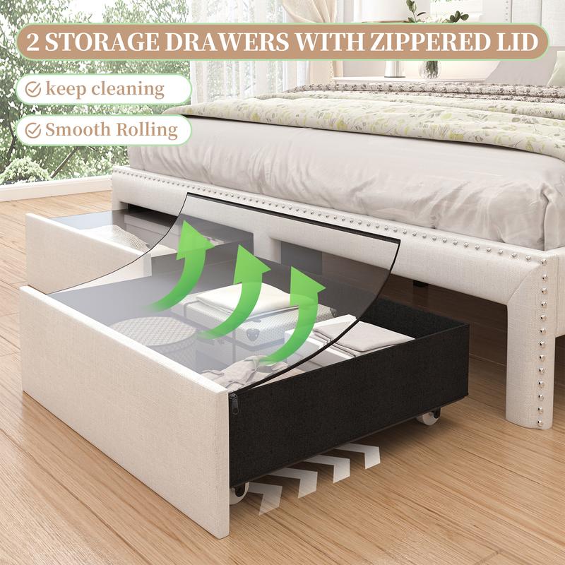 Queen Size Bed Frame with 2 Drawers