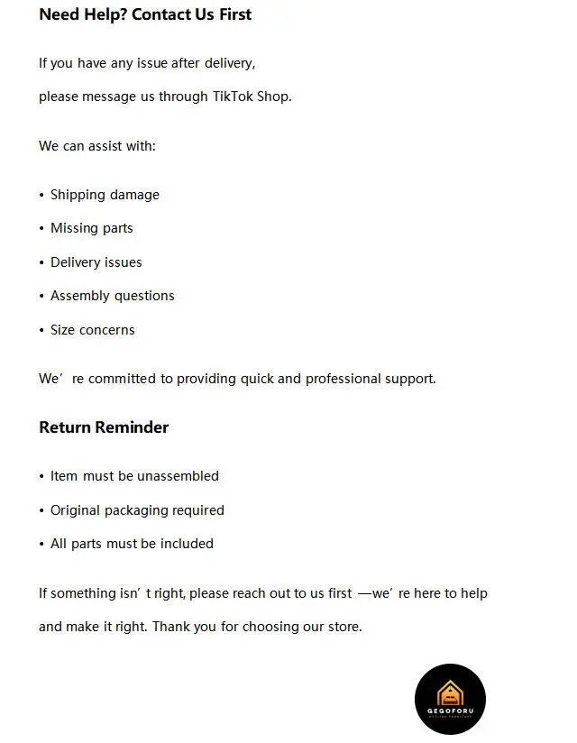Notice: If you have any questions about your order or after-sales issues, please contact us through TikTok Shop – we are committed to helping you and ensuring you have a great experience.