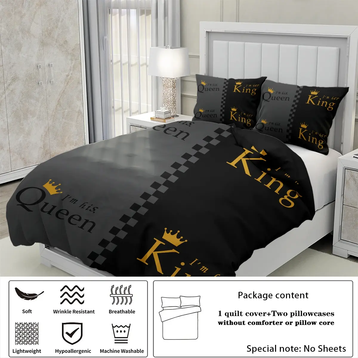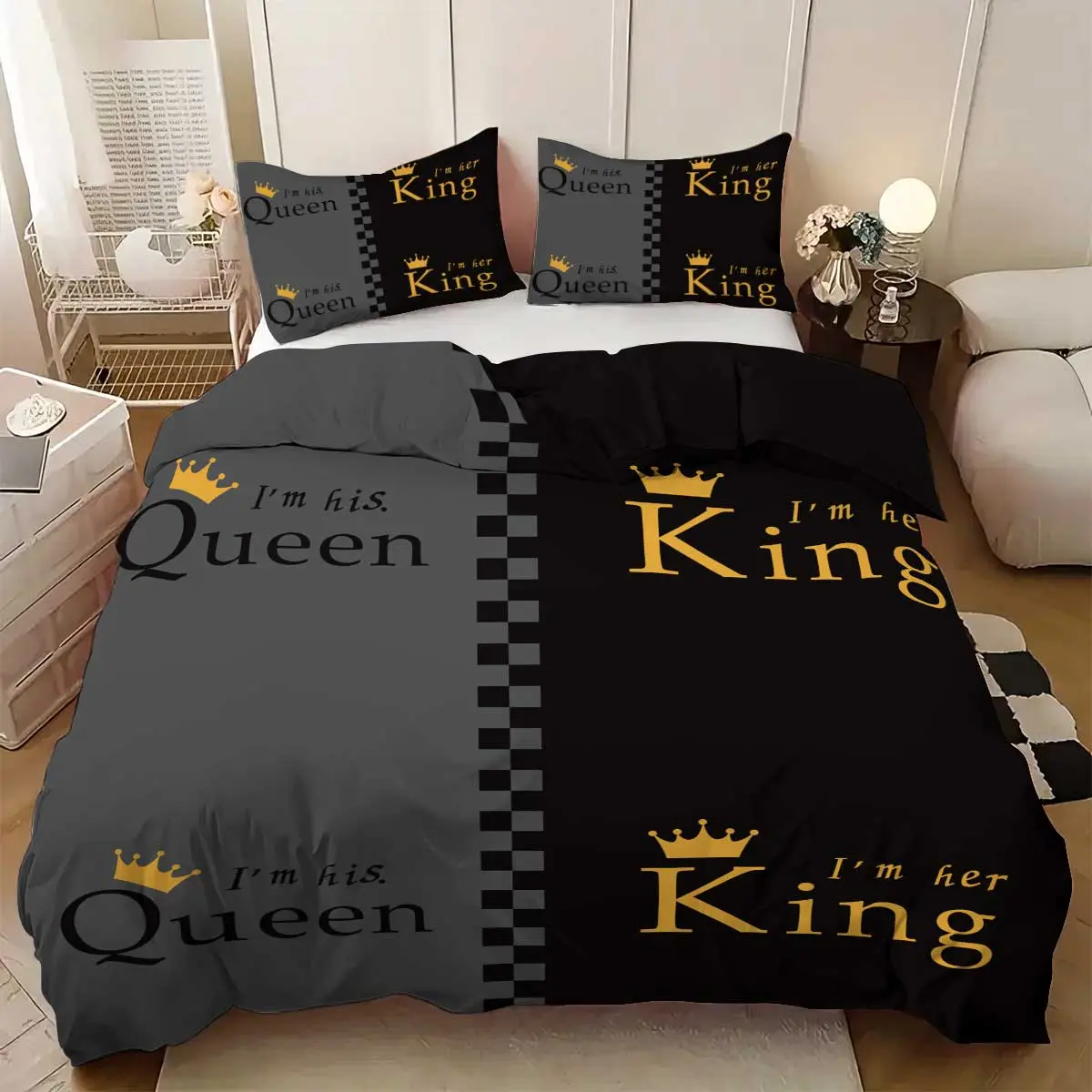 Queen Letter & Crown Pattern Bedding Set, 1 Count Bedspread & 2 Counts Pillowcase without Filler, Soft Comfortable Bedding Set for Bedroom