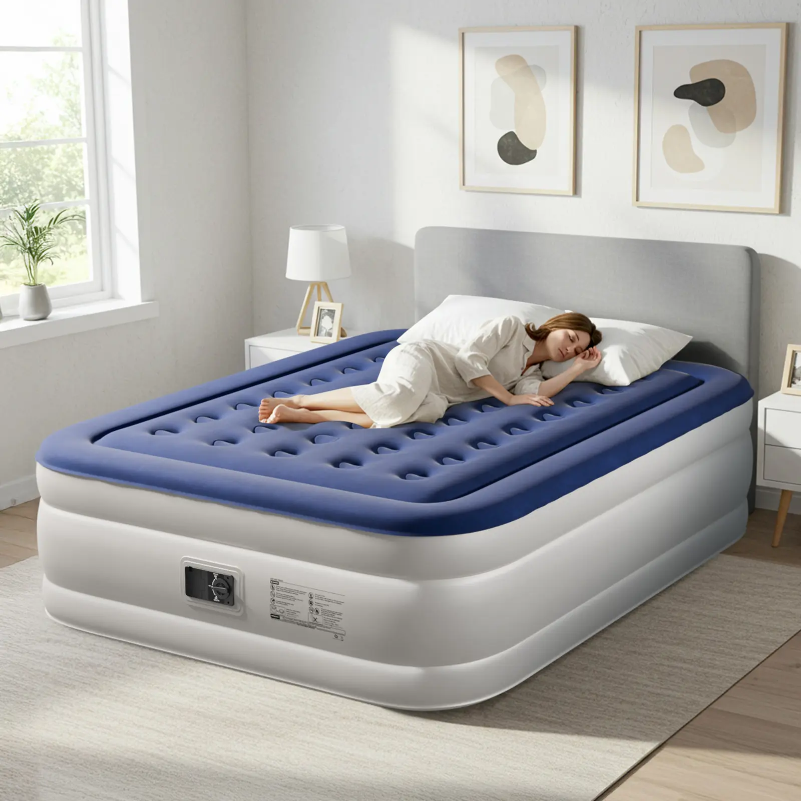 4. Upgraded Durable Material: Constructed with heavy-duty PVC, this airbed is waterproof, wear-resistant, and built to withstand daily use indoors or outdoors.