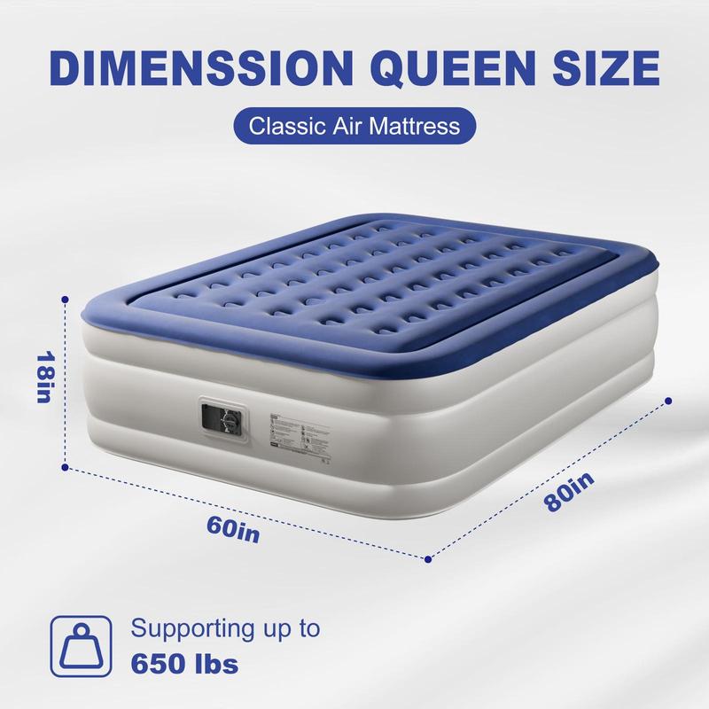 5. Space-Saving & Travel-Ready: At 80 x 60 x 18 inches when inflated, this queen air mattress folds compactly into the included storage bag—perfect for overnight guests, camping, or quick setup on the go.