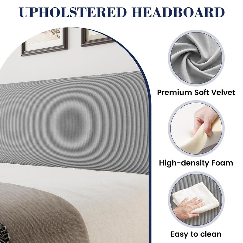 1.Luxurious Velvet Upholstery: The bed frame twin size features sumptuous velvet and soft sponge wrapping, adding a touch of elegance and inviting softness into your space. Additionally, two convenient storage pockets at the headside offer a practical solution for keeping your belongings easily accessible.