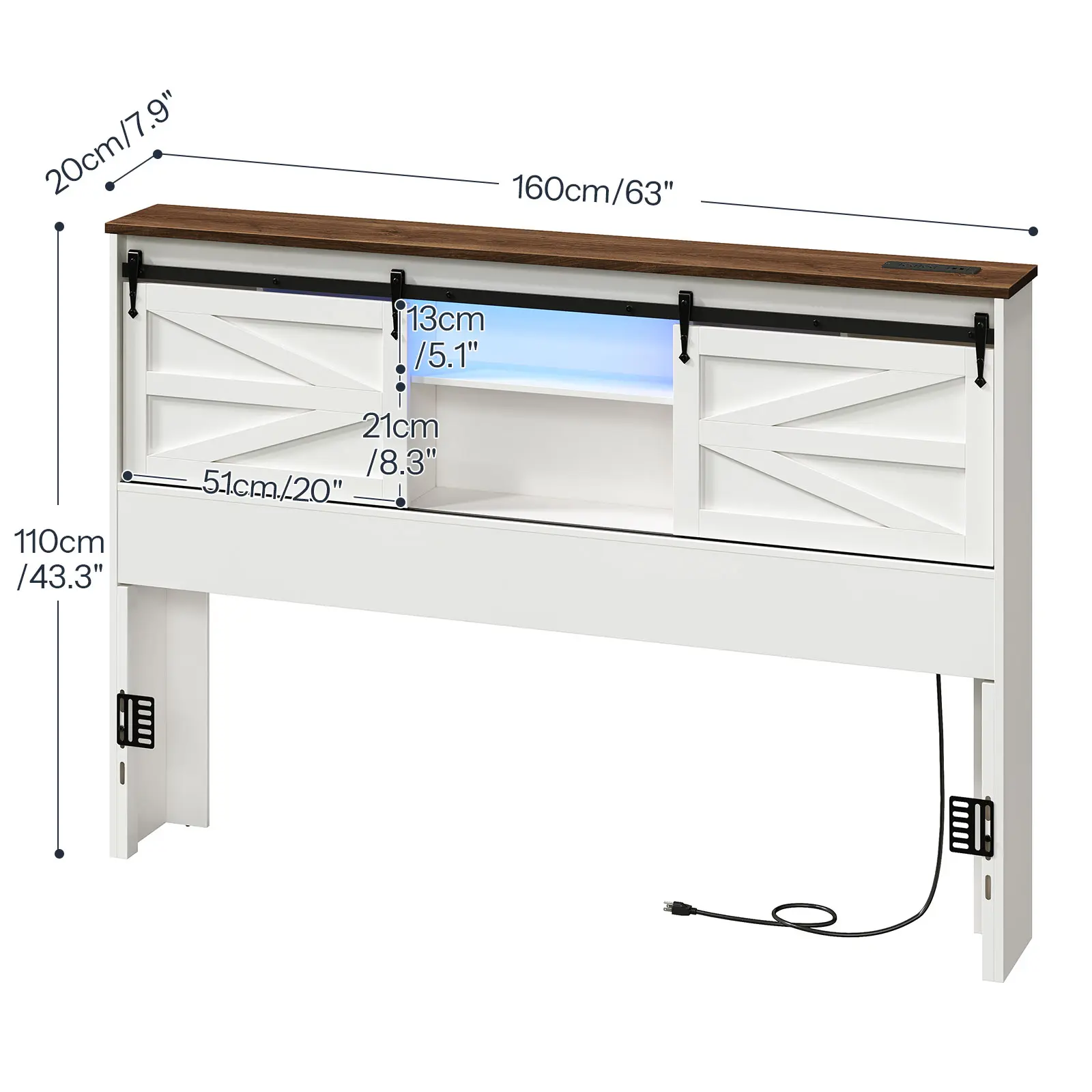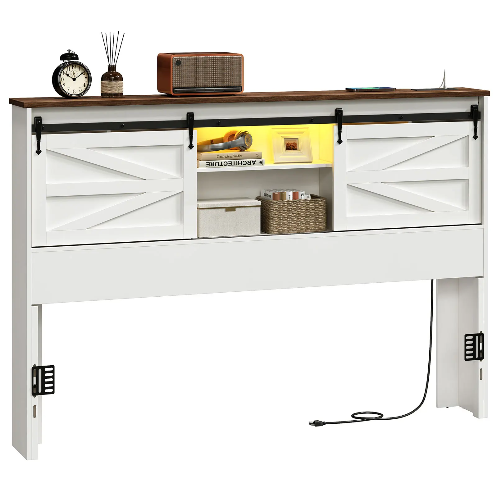 The artful combination of white and walnut hues creates an elegant visual appeal for the headboard, seamlessly complementing a wide range of bedroom styles and standing out as a focal point in your bedroom.