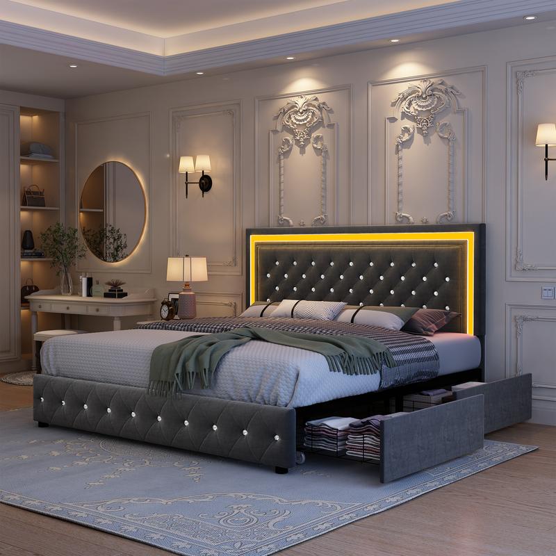 As you arrive home from a long day's work, our bedstead welcomes you with its enchanting Headboard & Footboard featuring RGB LED lights. Customize the lighting to your mood — be it a soft, calming glow for reading or a dynamic display for those cozy holiday nights. Experience the dynamic modes that sync with your favorite tunes, bringing warmth and festive energy into your bedroom this season.