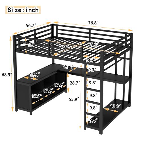 ·Modern Style: This Queen metal loft bed with desk is an ideal gift for a child! The simple and airy look suits any room style. Our loft bed is versatile and perfect for apartments, dorms, and teenage rooms!
