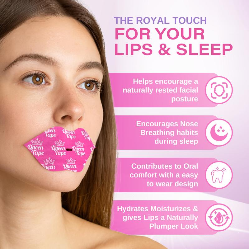 Drift into deep, restorative sleep and wake up with soft, fuller, and hydrated lips with Queen Tape: Royal Plump Edition. Specially crafted for women, this premium edition blends advanced sleep support with lip-plumping hydration to help you wake up refreshed, radiant, and confident.