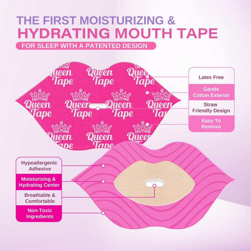 This new, luxurious edition of Queen Tape is the first to combine beauty and wellness in one product. Designed to meet the specific needs of women, it helps you sleep better while nourishing and plumping your lips. Wake up refreshed, radiant, and ready to rule your day.