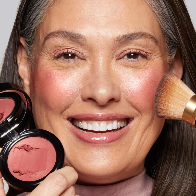 This Laura Geller kit is perfect for mature skin. Light coverage but can be layered. As a tinted moisturizer, the application is like putting a light face cream on. The brush applies the blush beautifully and evenly. Zero settling in fine lines or caking. Just a glowy, pretty look. Love.