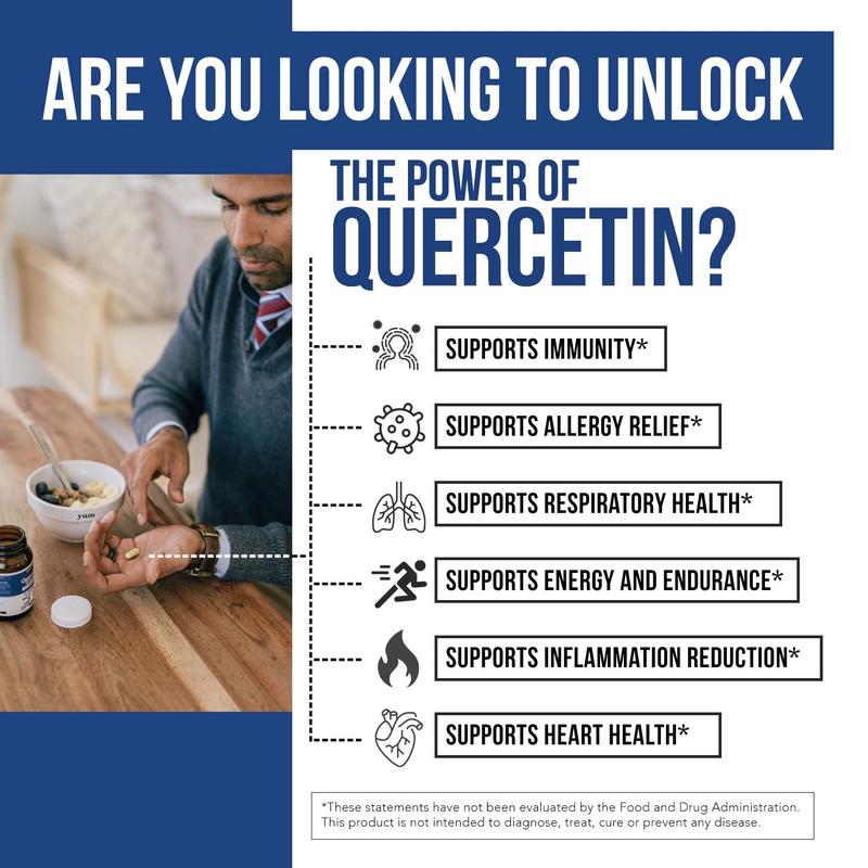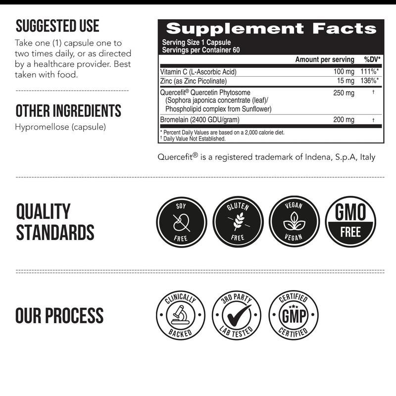 ENHANCED WITH VITAMIN C & BROMELAIN: Includes Vitamin C and Bromelain, which work together to enhance the effectiveness and absorption of Quercetin in the body.