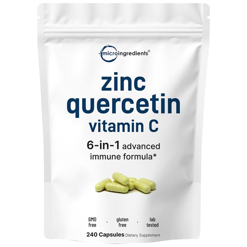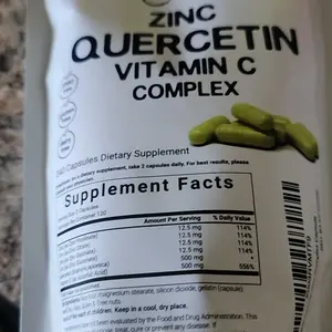 ·Each pouch provides 240 total capsules with 120 servings and a 2-capsule serving size. This offers a zinc 50mg complex of picolinate, citrate, glycinate, and gluconate, as well as quercetin 500mg as sophora japonica and vitamin C 500mg as ascorbic acid.