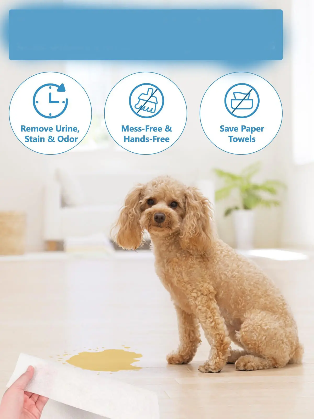 【Easy to Use】Cover the liquid with the pet pee quick-absorb sheet directly,do not need to wipe forcefully,allow the liquid to be absorbed directly for approximately 15 seconds.