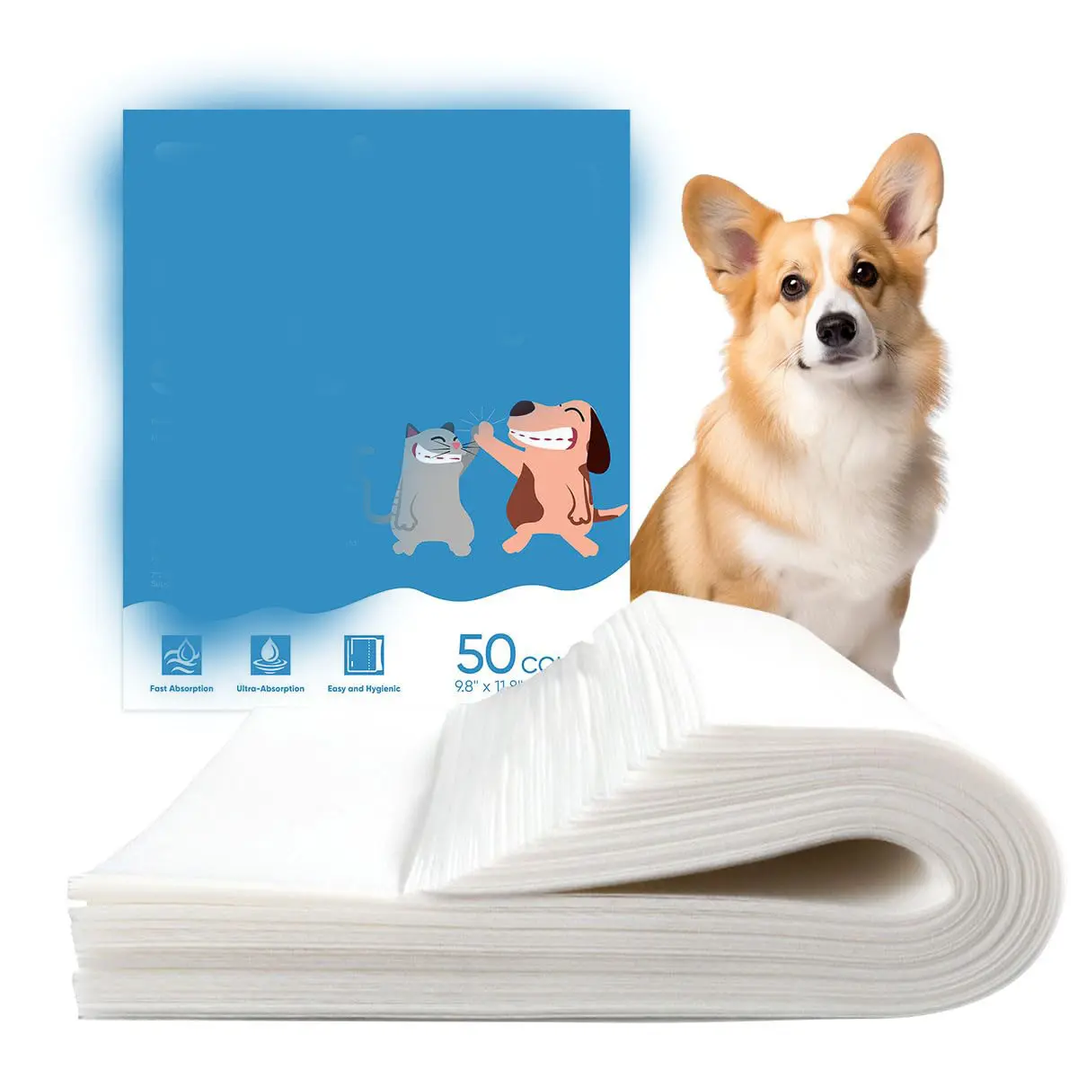 【Double-sided Absorb】The pee sheets use double-sided absorption design, easy to carry and available anytime, anywhere.Compared with other pet pee pads which only has one side absorption,our pee quick-absorb sheets' two sides are available,it is more convenient to use.