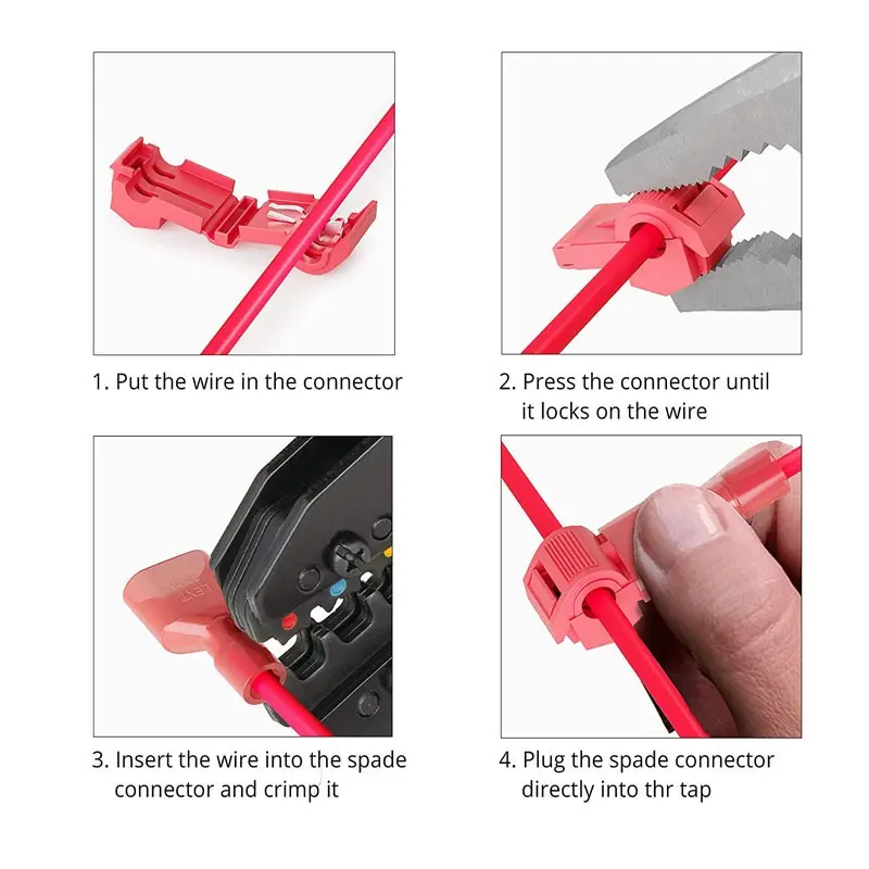 【PREMIUM QUALITY】Constructed with thicker tinned copper contacts, these wire connectors are durable enough to tap into thicker wires without bending. They also feature a secure lock system and a plastic insulated housing that ensures reliability once attached