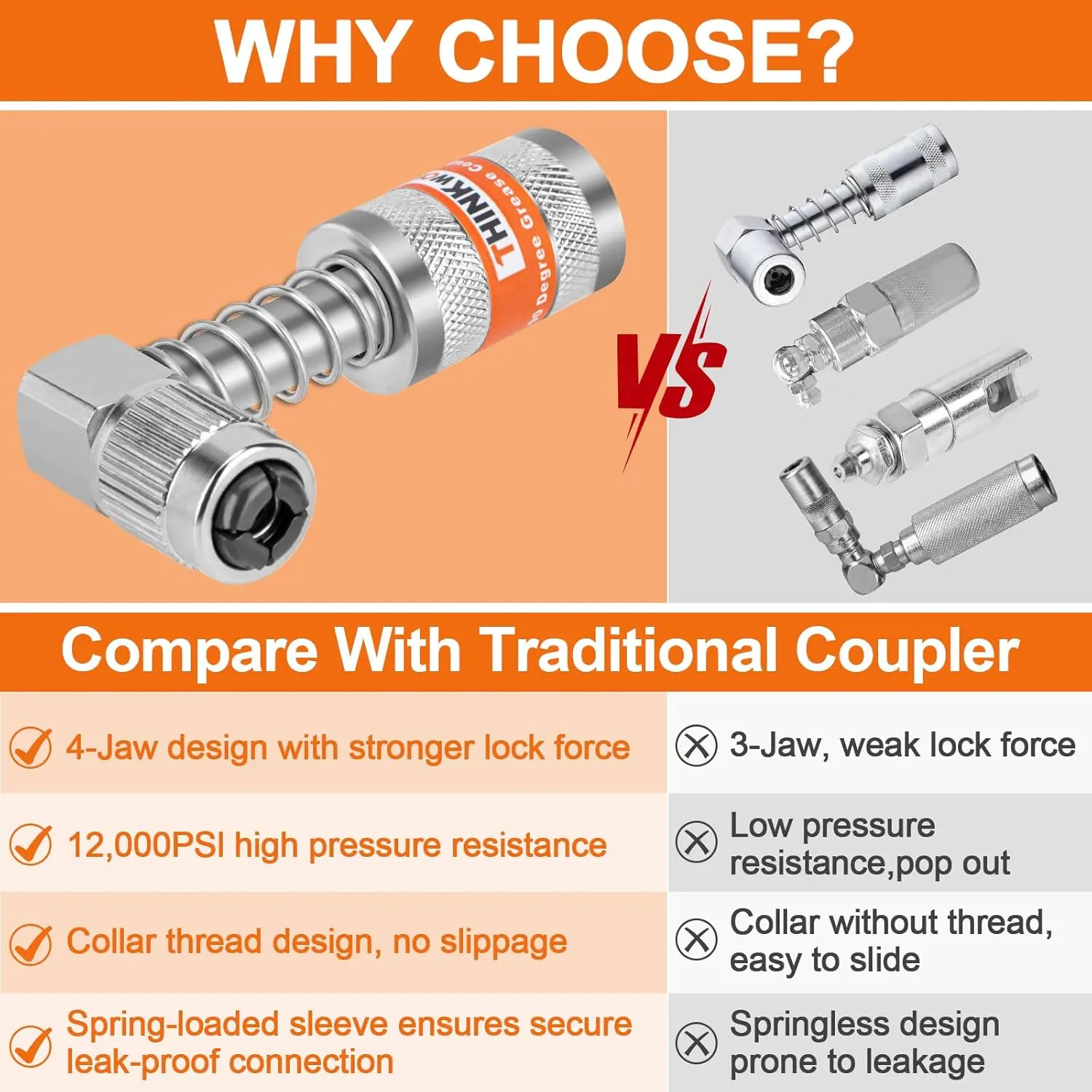 Quick-Connect & High- Lock - Upgraded 90° adapter features an innovative four-jaw connector with threaded . Simply ROTATE the for a fast, secure connection and release, even under up to 12,000 PSI