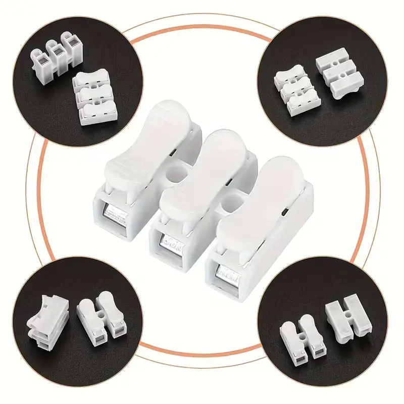 10/20/50pcs Double Wire Insert Connectors with Locking Latch - Plug-and-Play LED Cable Connectors, Durable Reliable Connectors, 2-Pin 2-Way Wire Connectors AWG 18-22 No Stripping Required Copper Contacts PVC Insulated Quick Connector