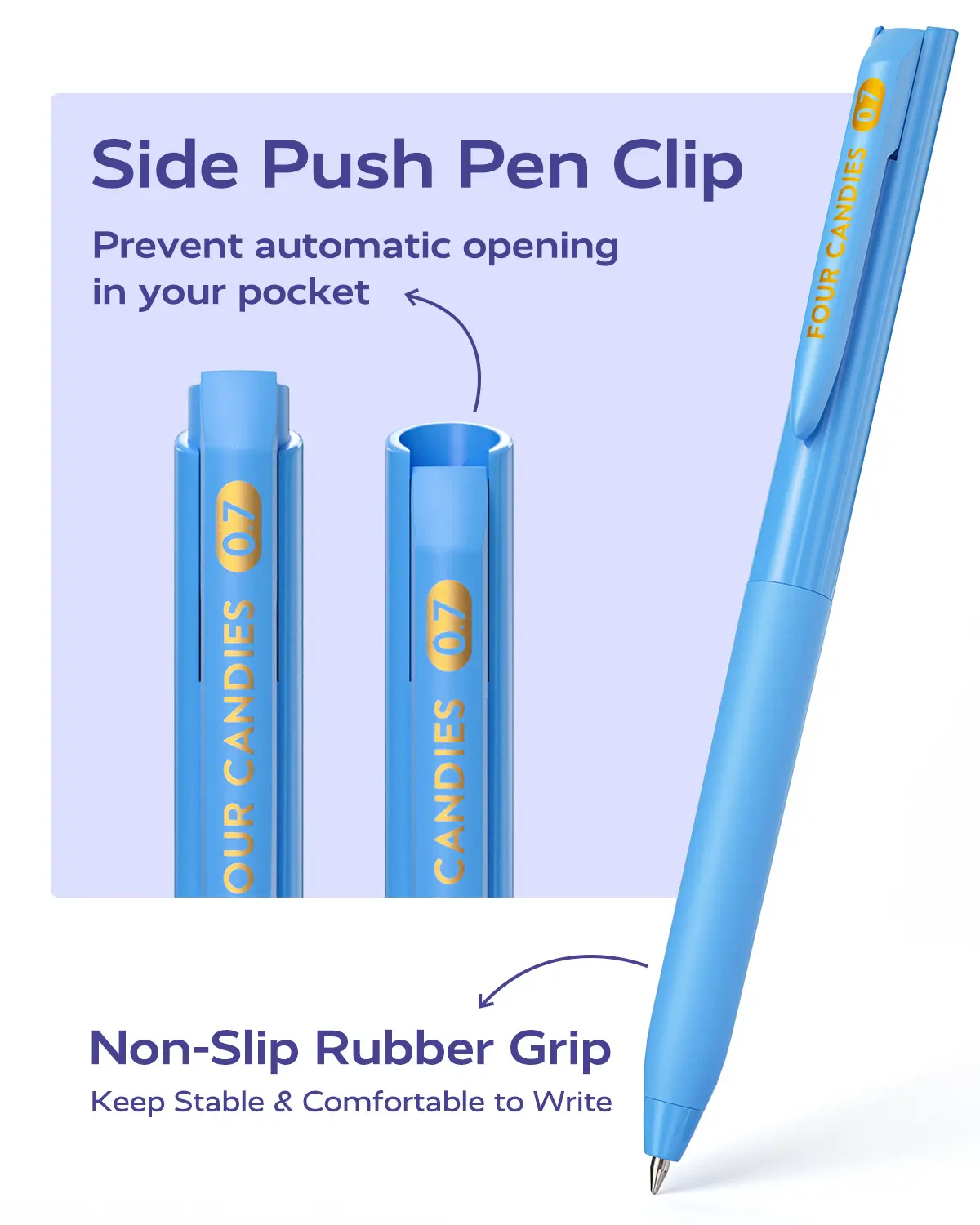 ·INGENIOUS PEN CLIP DESIGN: These colored gel pens feature an innovative side push clip that extends the tip only when fully slid down, preventing accidental openings. The design keeps the tip away from your pocket or pencil bag, avoiding ink marks and scratches, while protecting your belongings from ink stains