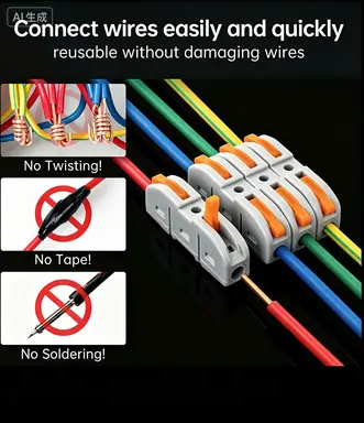 EASY & FAST INSTALLNo twisting, no tape, no crimping tools needed! Just strip the wire, lift the lever, insert, and clamp. Connect/disconnect in seconds.