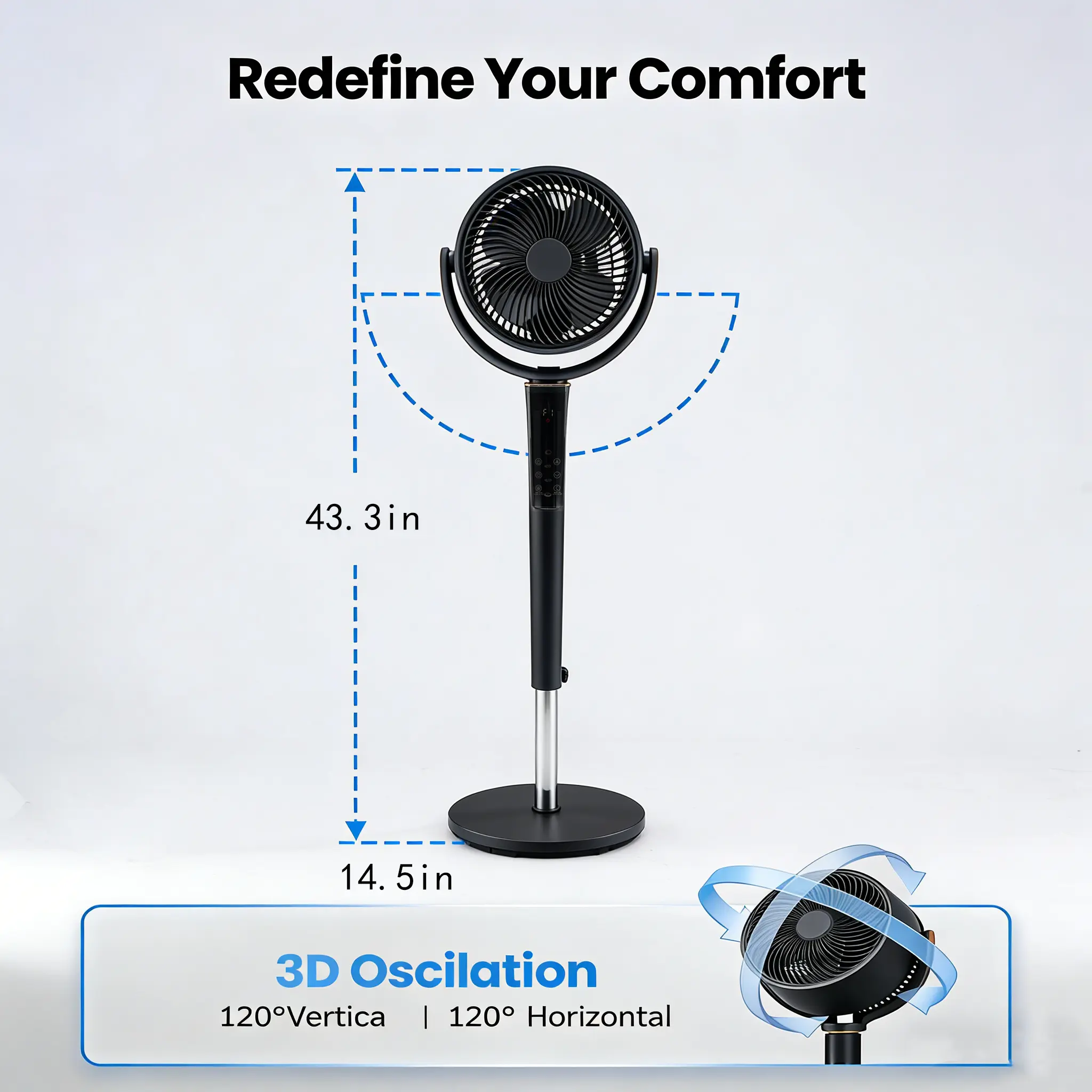 ·Supports 60-120° vertical swing and 60-120° horizontal swing, providing a uniform distribution of airflow in all directions. It can easily cover every corner of the room, avoiding local heat buildup. The height can be flexibly adjusted between 37-45 inches, suitable for different usage scenarios such as floors and bed surfaces, and meeting diverse blowing needs.