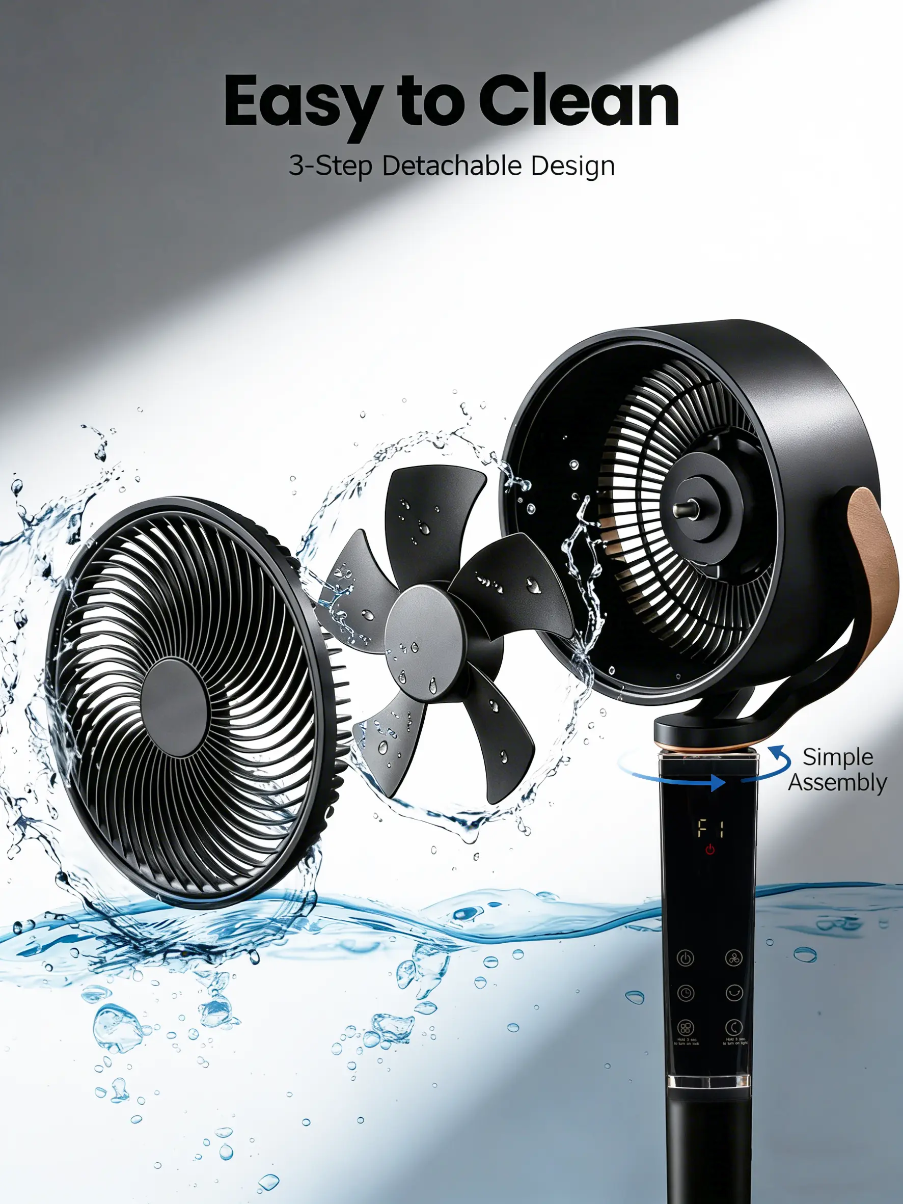 ·Say goodbye to the limitations of fan settings. The advanced base fan is equipped with 15 speed levels, combined with 5 exclusive modes (normal, natural, sleep, auto, turbo), with maximum adjustment precision. From a gentle whisper-like breeze to a powerful blow, it can precisely adapt to different scene needs, effortlessly creating a comfortable sensory environment.