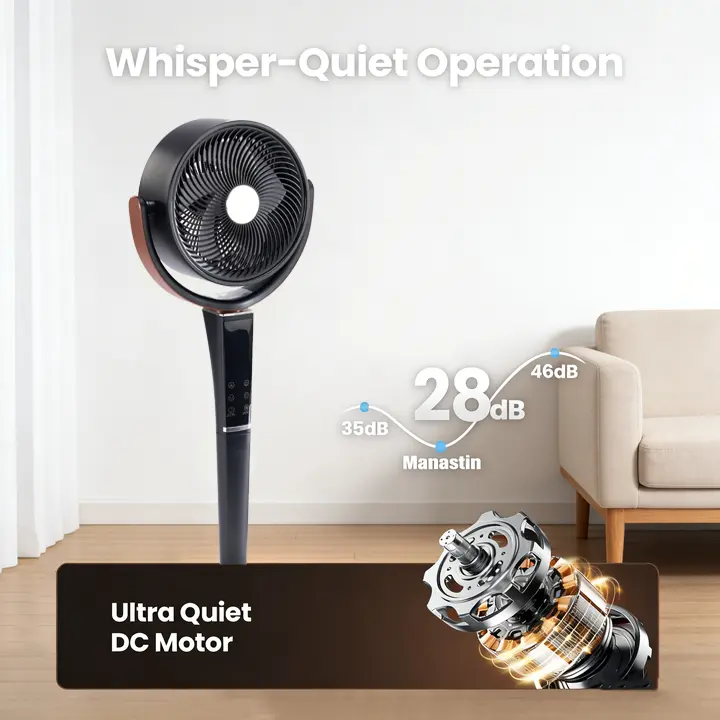 ·It is driven by a high-quality 24V brushless DC motor, which can provide a powerful air circulation of 1050 cubic meters per hour, quickly dispersing the heat. It can also achieve ultra-low noise operation, with the quietest setting having a noise level of only 20-23 decibels. It is suitable for scenarios such as bedrooms, baby rooms, and study areas that require a quiet environment, providing coolness without disturbing the peace.