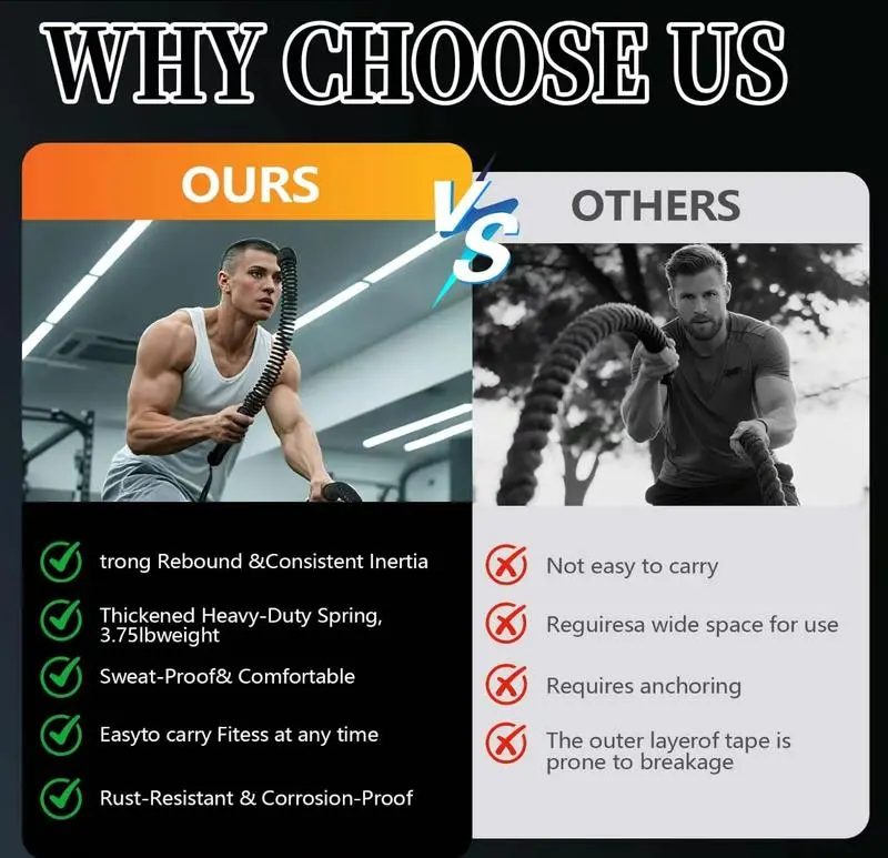 ·Weighted & Cordless Design: These battle ropes are both weighted and cordless, perfect for home gym workouts. 🏋️♀️
