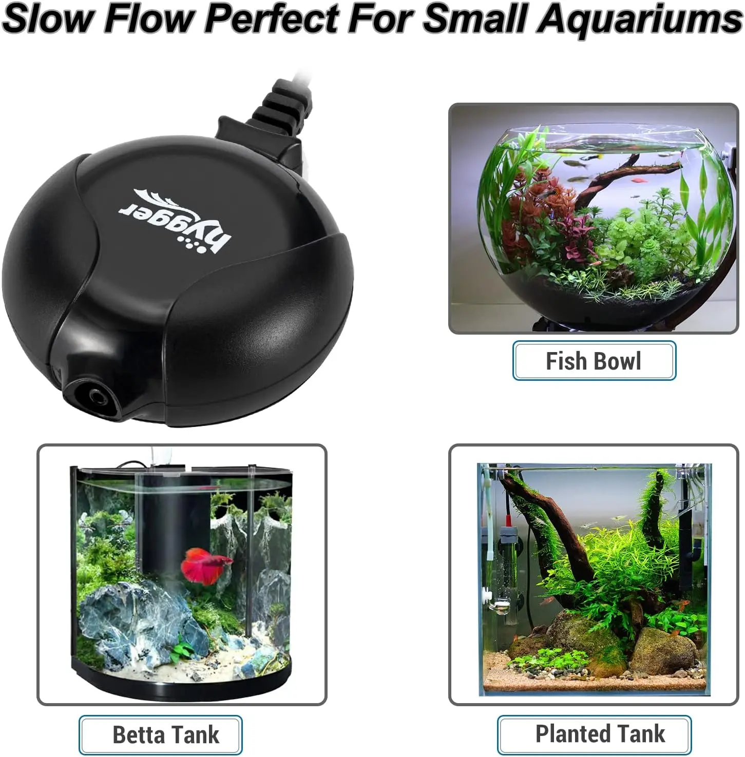 Hygger HG-811 Quiet Aquarium Air Pump stands out in small fish tank pumps for its light-weight, quiet and energy saving. Build in a thin piezoelectric ceramic plate, unlike traditional air pump, it is effectively reducing the noise when its working, so quiet that you can barely hear anything except the sound of bubble bursting in the water surface. It is suitable for small aquariums with volumes up to 15 gallons.