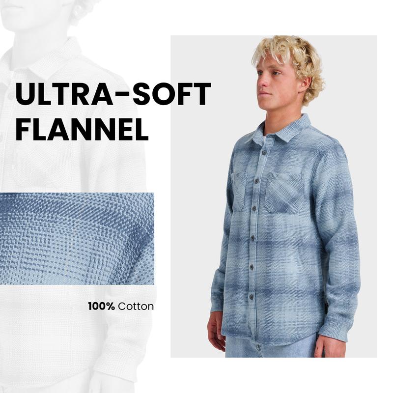 Our ultra-soft flannel Dna shirt codes for the perfect everyday look, keeping you cozy for all your outdoor adventures. Featured here in the China Blue colorway.