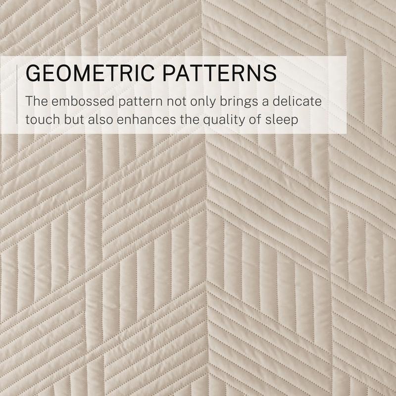 Exquisite Home Decor: Classic geometric patterns are formed by ultrasonic high temperature embossing technology which makes the quilt more sturdy and lightweight. The modern striped patterns on both sides combined with attractive colors add a touch of elegance to your bedroom decor, making it a timeless choice for all seasons.