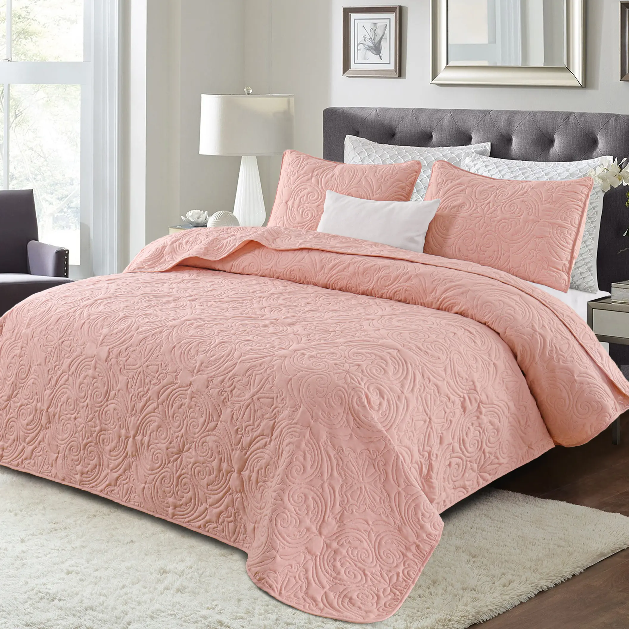 Beautiful color. Arrived timely. Incredibly thin. More of a cover than a quilt.