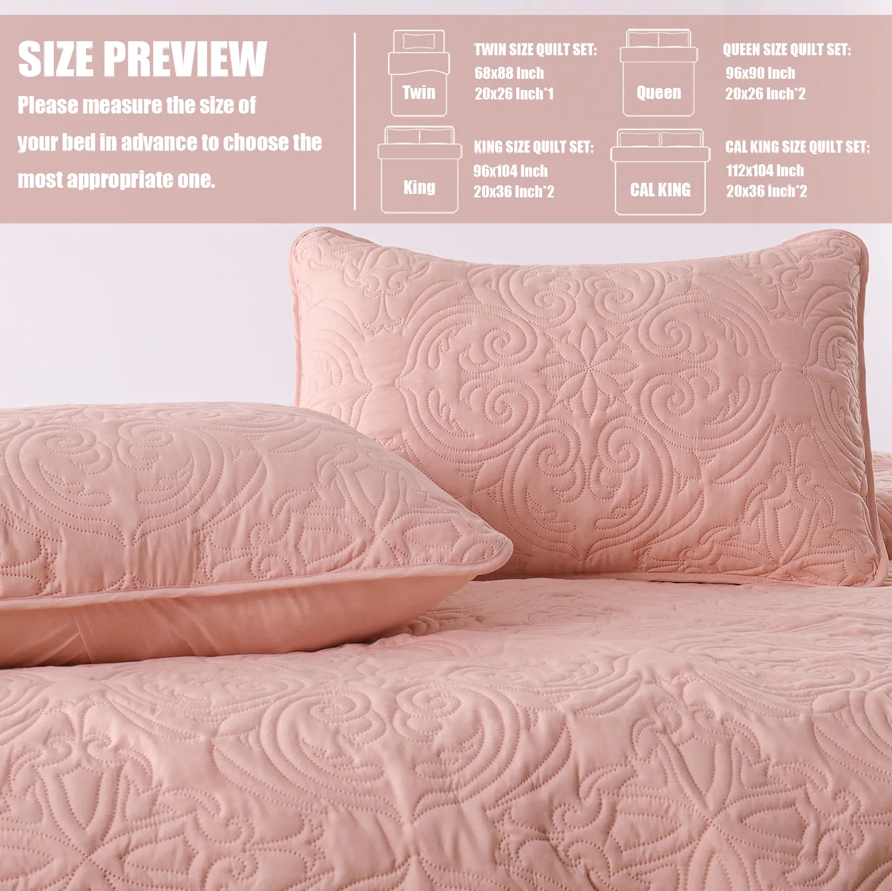 Finally a quilt that fits thicker mattresses! It is exactly as described!! I bought two, the king and the twin and I love them.