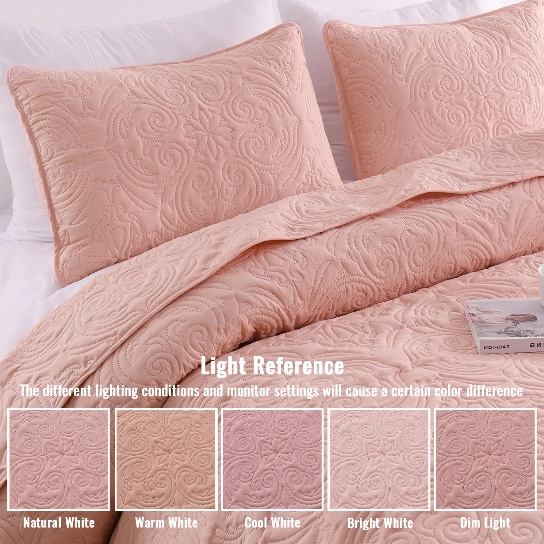 Amazing quilt blanket and pillow cases! I highly recommend buying especially for the price. The color is exact as well.