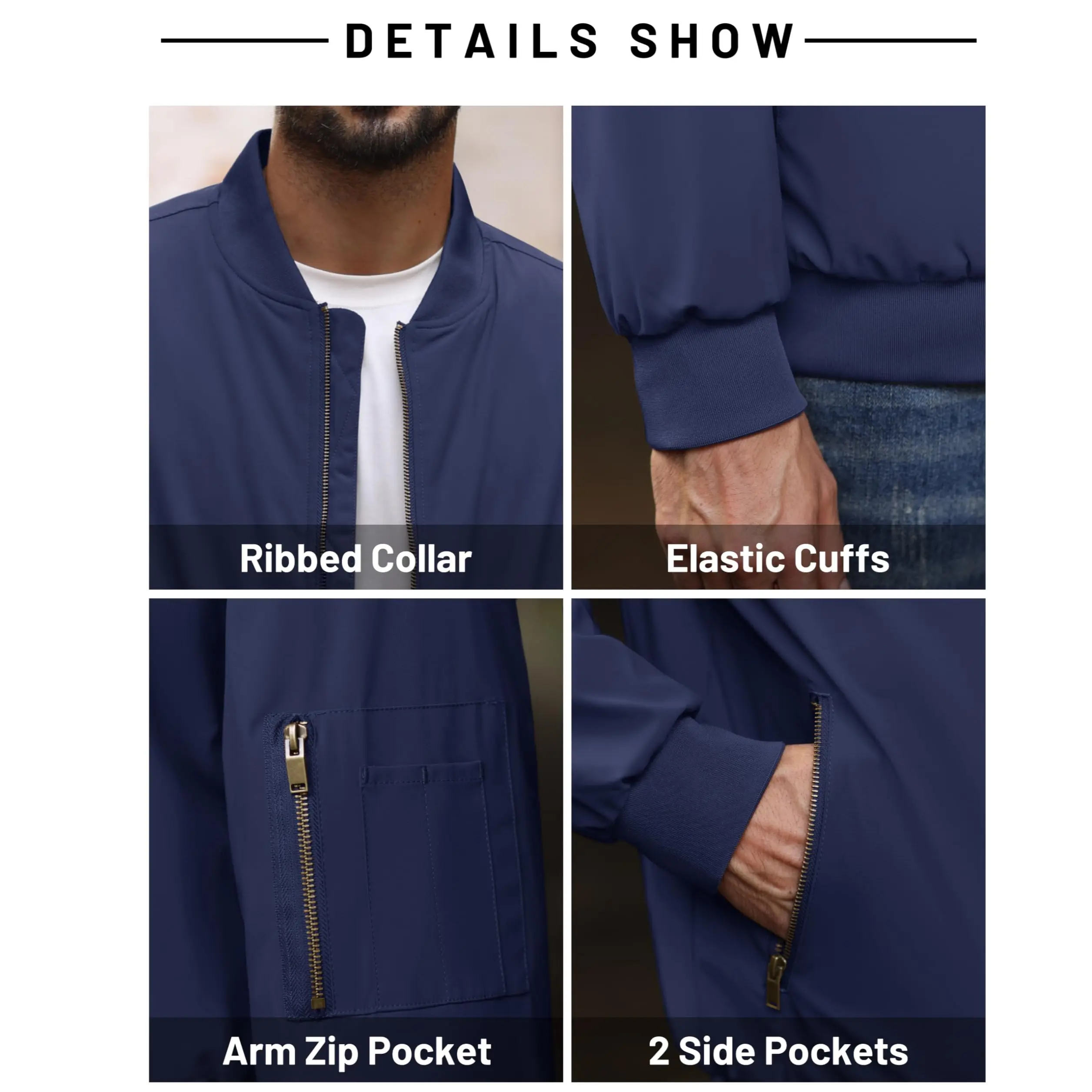 2.[Multi-Pockets]:There are 2 side zipper pockets, 1 pencil pocket on the LEFT sleeve and 1 inner pocket on the chest.