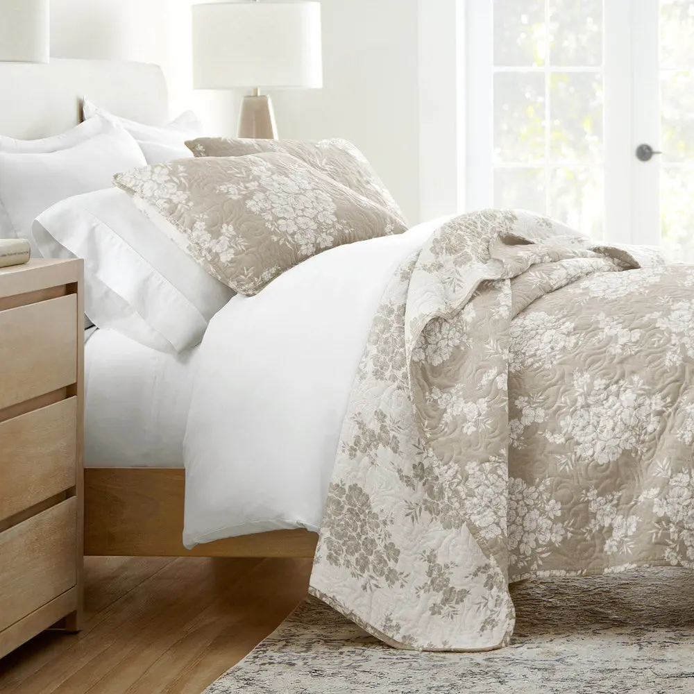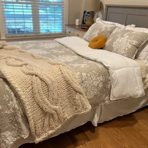 I got the taupe reversible quilt. The quality is really good and I love that it’s a light weight quilt. In the pic is also the sheets and herringbone blanket.