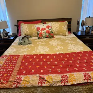 Love the quality and color of this quilt! It’s the perfect weight for summer and looks beautiful in my room. It’s so bright and cheery! Several do my friends have commented on how nice it is! Well worth the price!