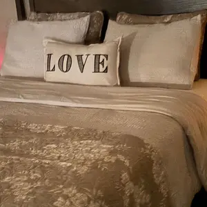 Came in a few days and worth the wait. So lovely and soft as are the matching pillow covers. I went with the photo that was on site and loved the whole look. Now awaiting for a contrasting brown 14 by 24 pillow to complete my new linens. Great quality. Thank you!