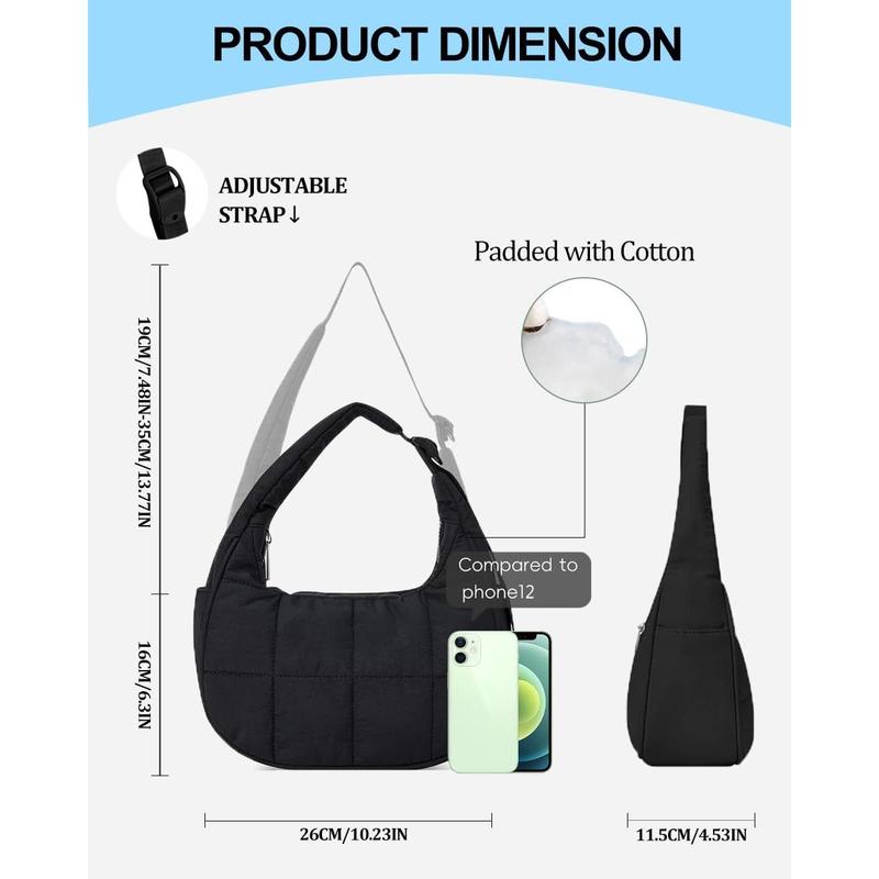 ENOUGH CAPACITY - The puffy purse has enough capacity to store your daily essentials such as mobile phones, wallets, books, umbrellas, etc.This crescent quilted bag is designed with main compartment, zipper pockets, insert pockets, etc. for easy classification and storage of different items.