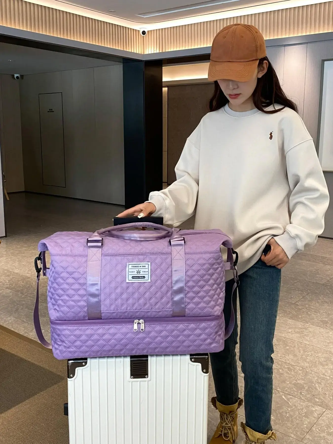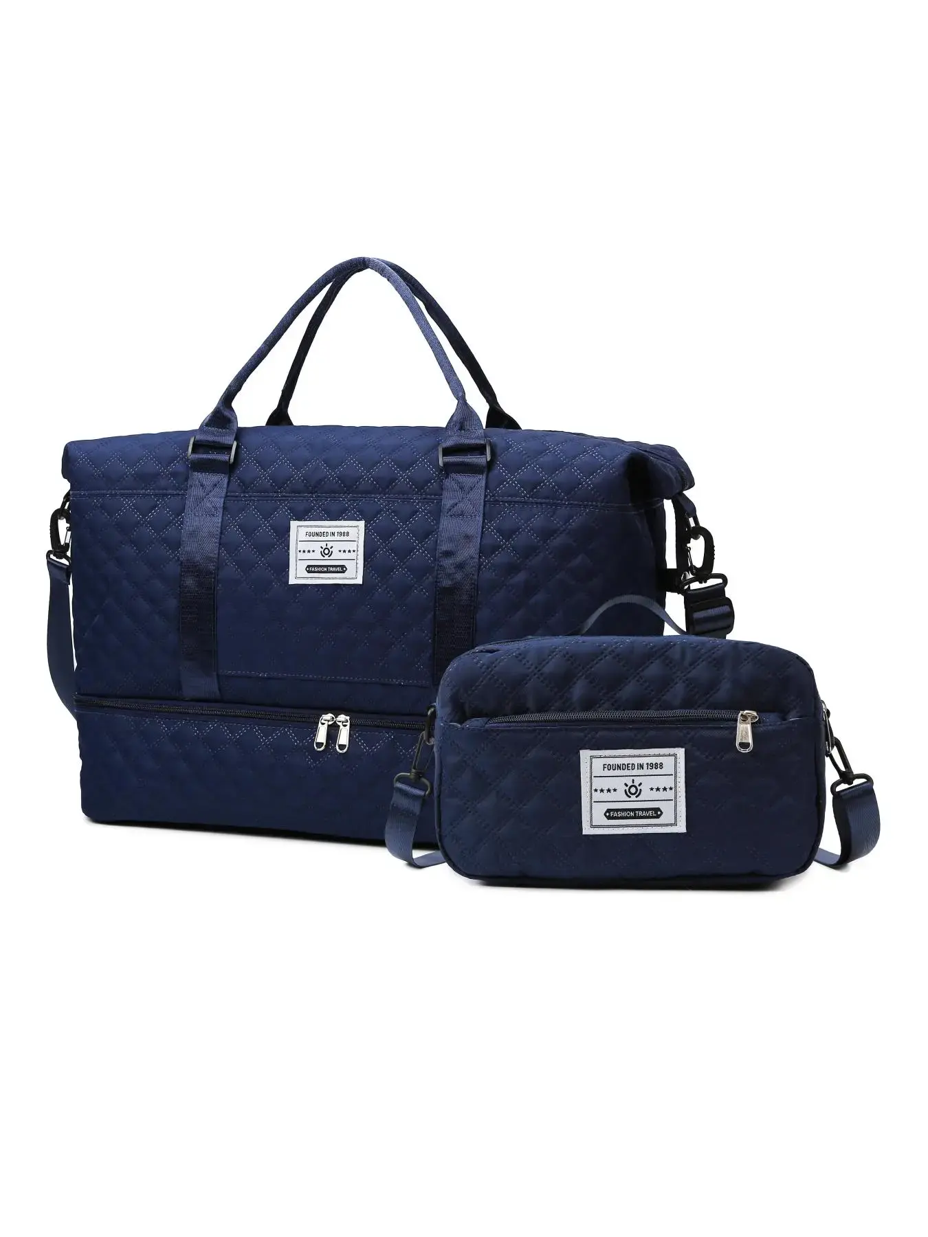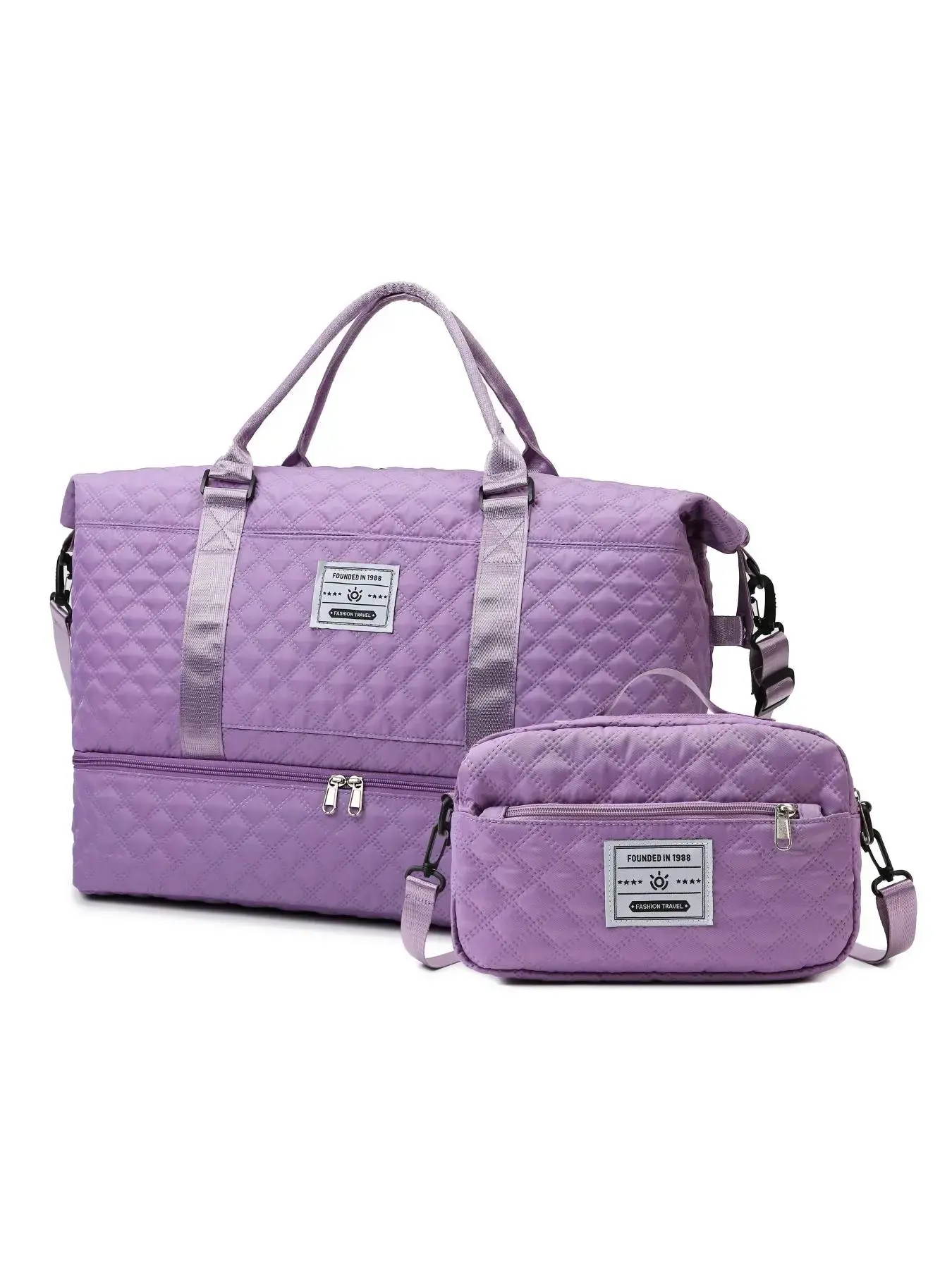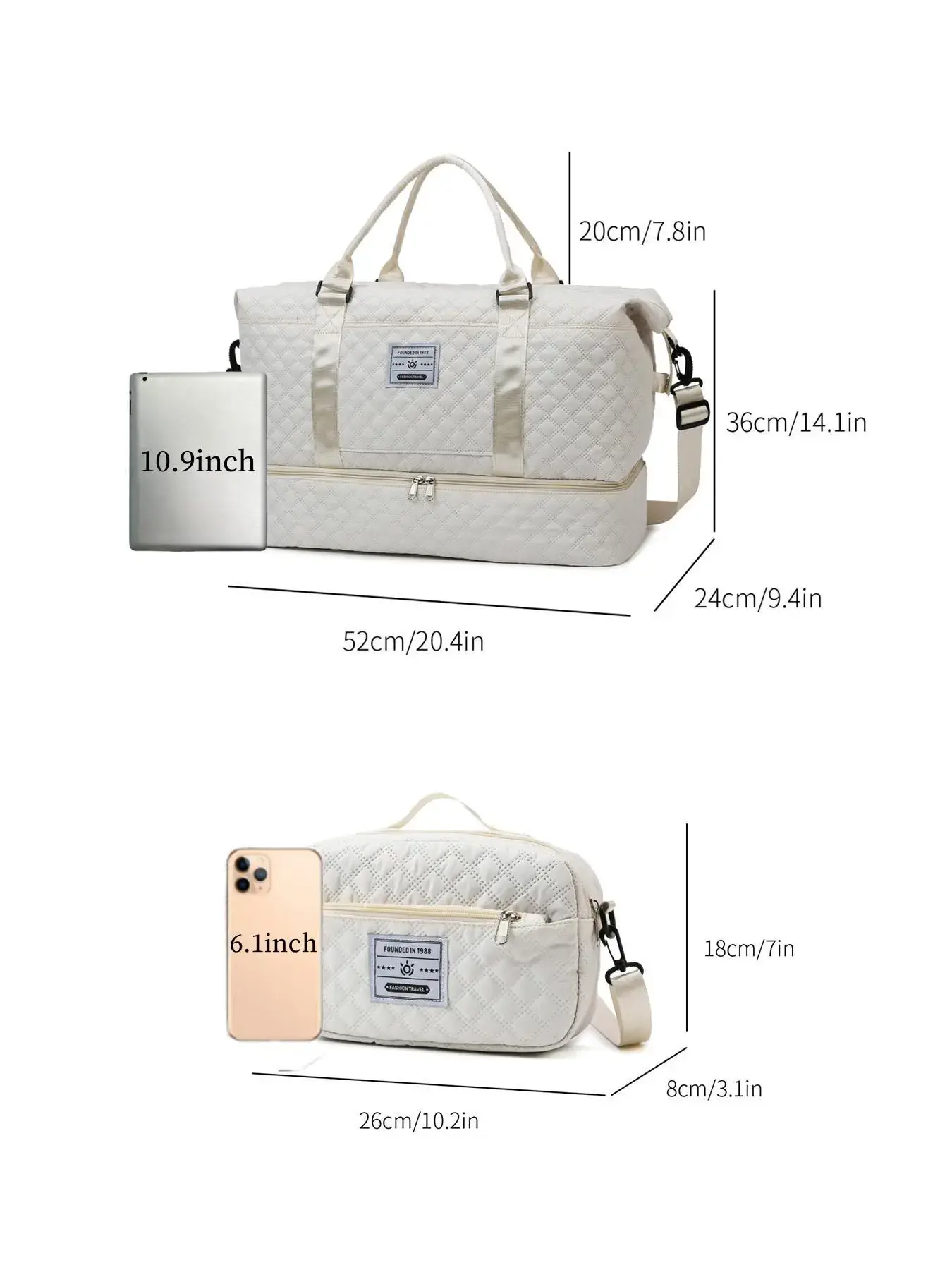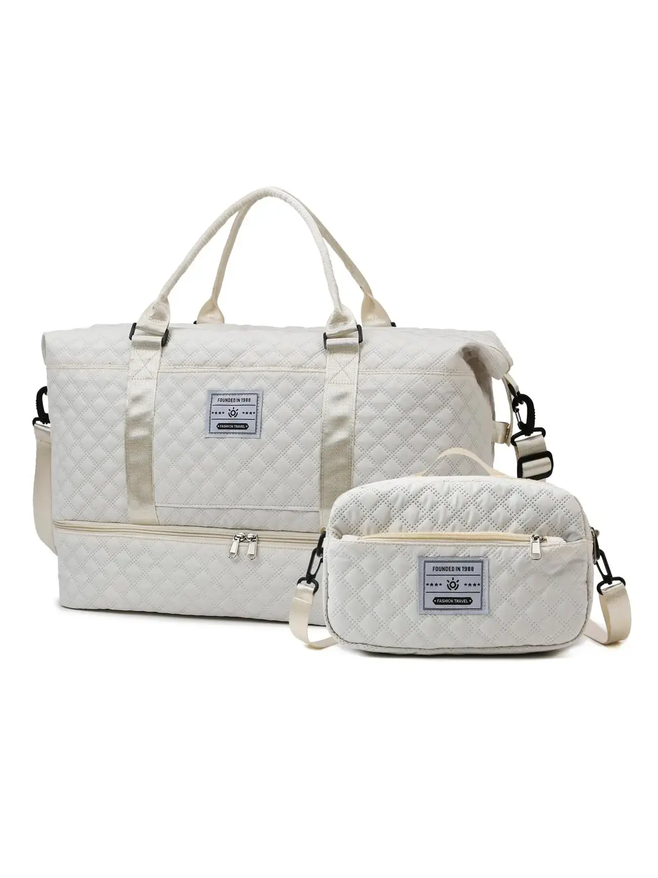 Quilted Pattern Travel Bag Set, Large Capacity Duffel Bag & Cosmetic Bag, Dry & Wet Separation Sports Bag, Yoga Gym Bag, Travel Bag for Women & Men