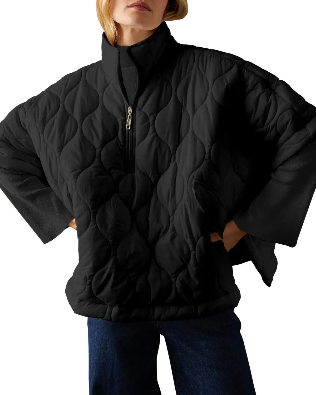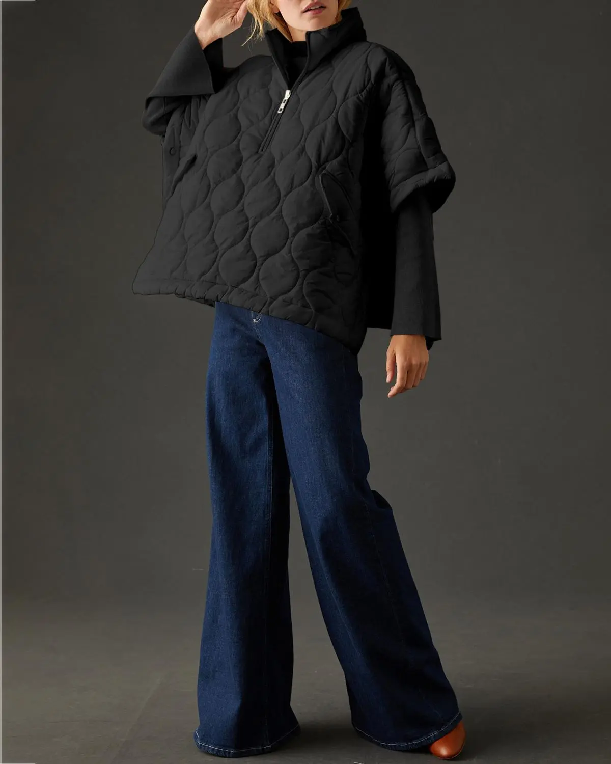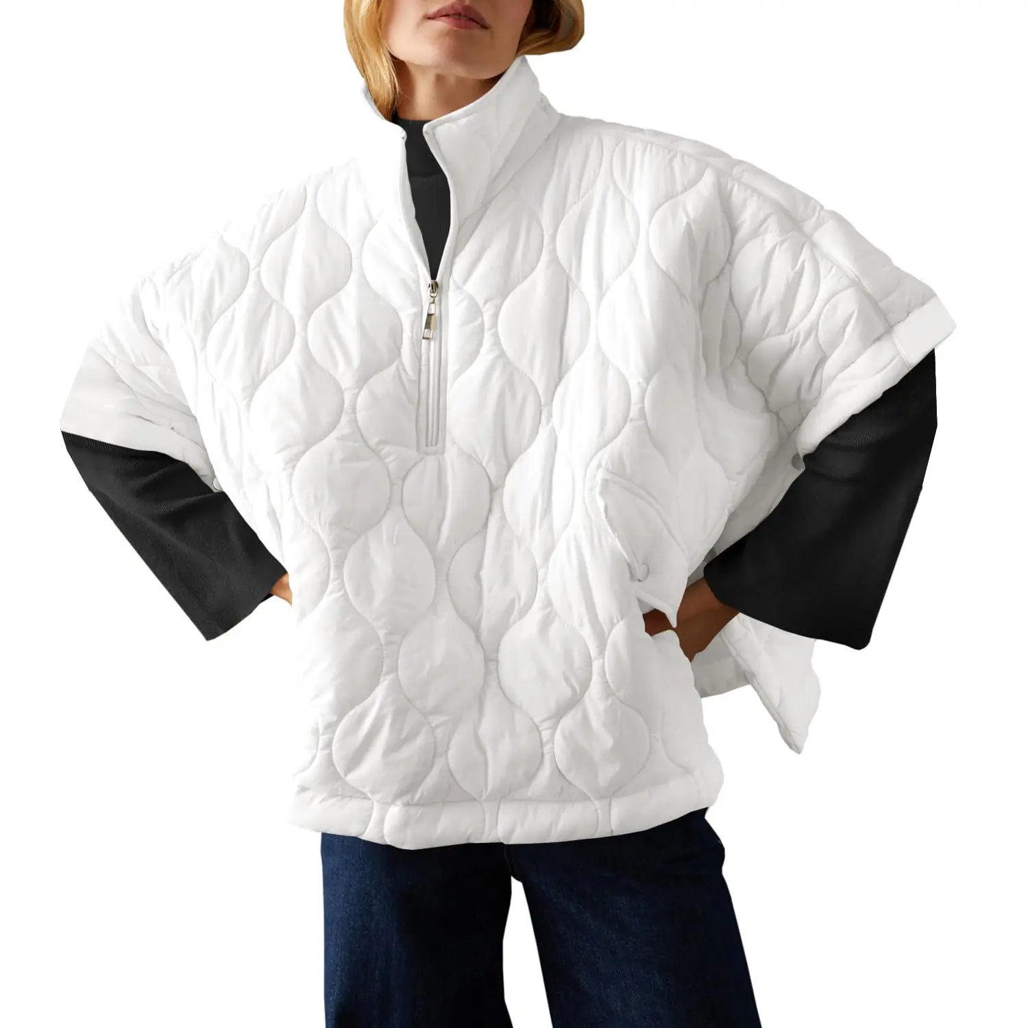 Whether you're running errands or heading out for a night on the town, this poncho-style puffer jacket will keep you cozy and stylish in any weather.