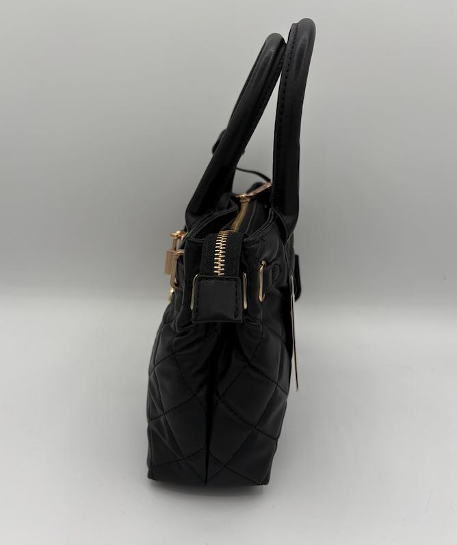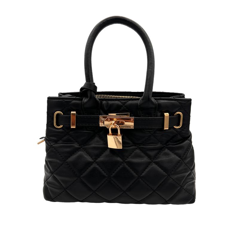 Me encantó este bolso por qué tiene un candado que le hace lucir más bonito al bolso tiene un diseño único negro se combina con todo y es un muy buen. Precio .