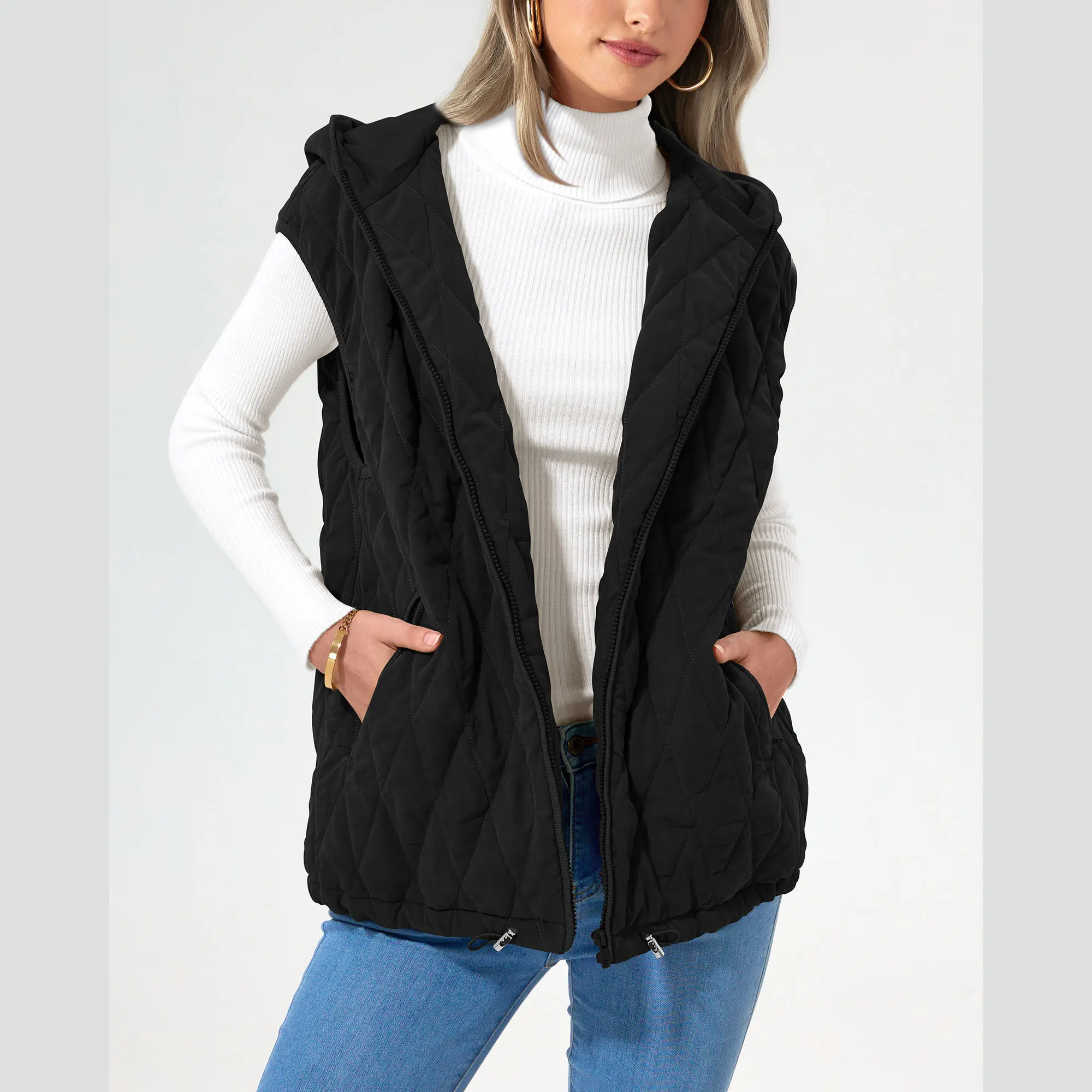 I love the material, length and style of the vest but I hate the hood. I wish it could be removed or just sold without it