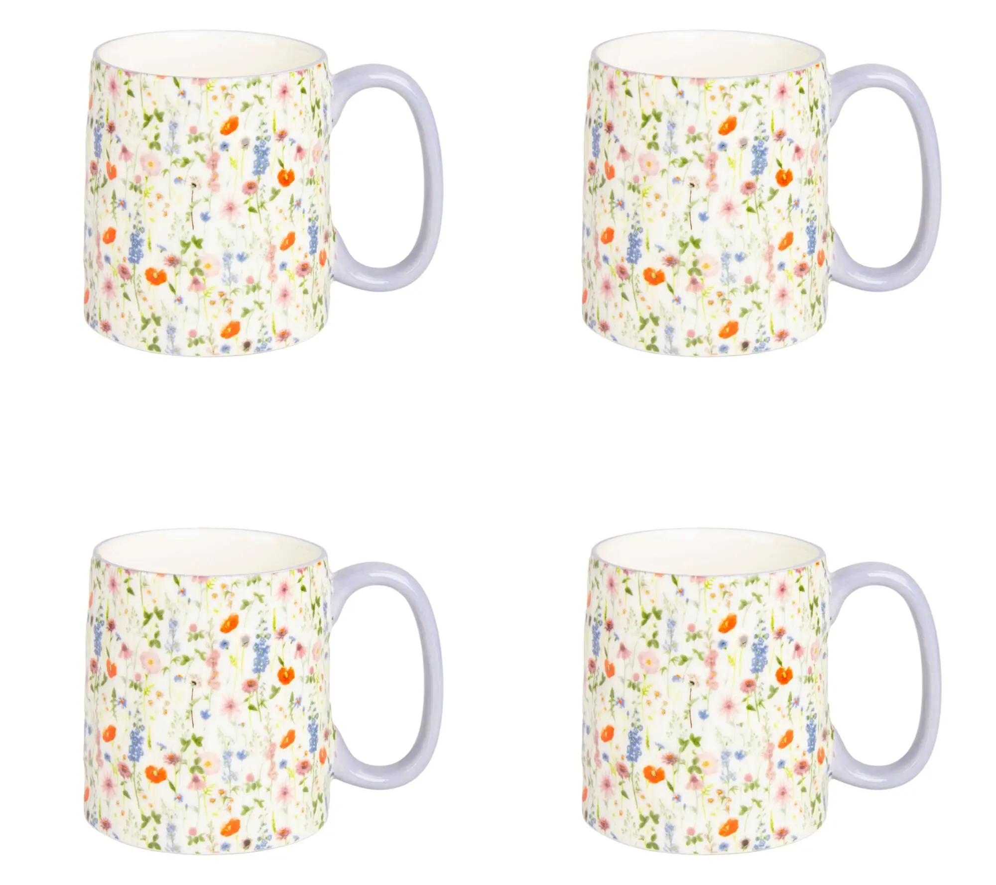 Love this 4set- beautiful mugs. Great design. Easy to hold handle.Love drinking hot & cold drinks. dishwasher and microwave safe! Also you can't really visually see, but the mug is textured a tad, so it helps to prevent any accidental slips or prevents dropping. Love this. Arrives gift ready too.