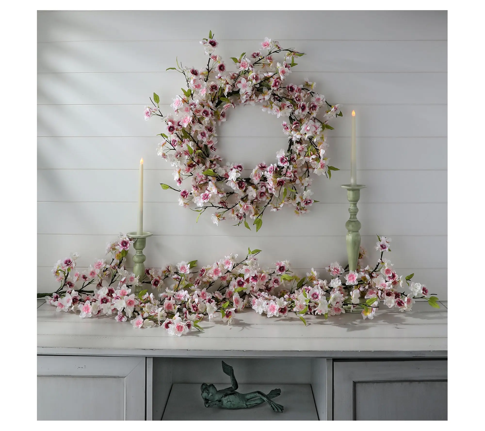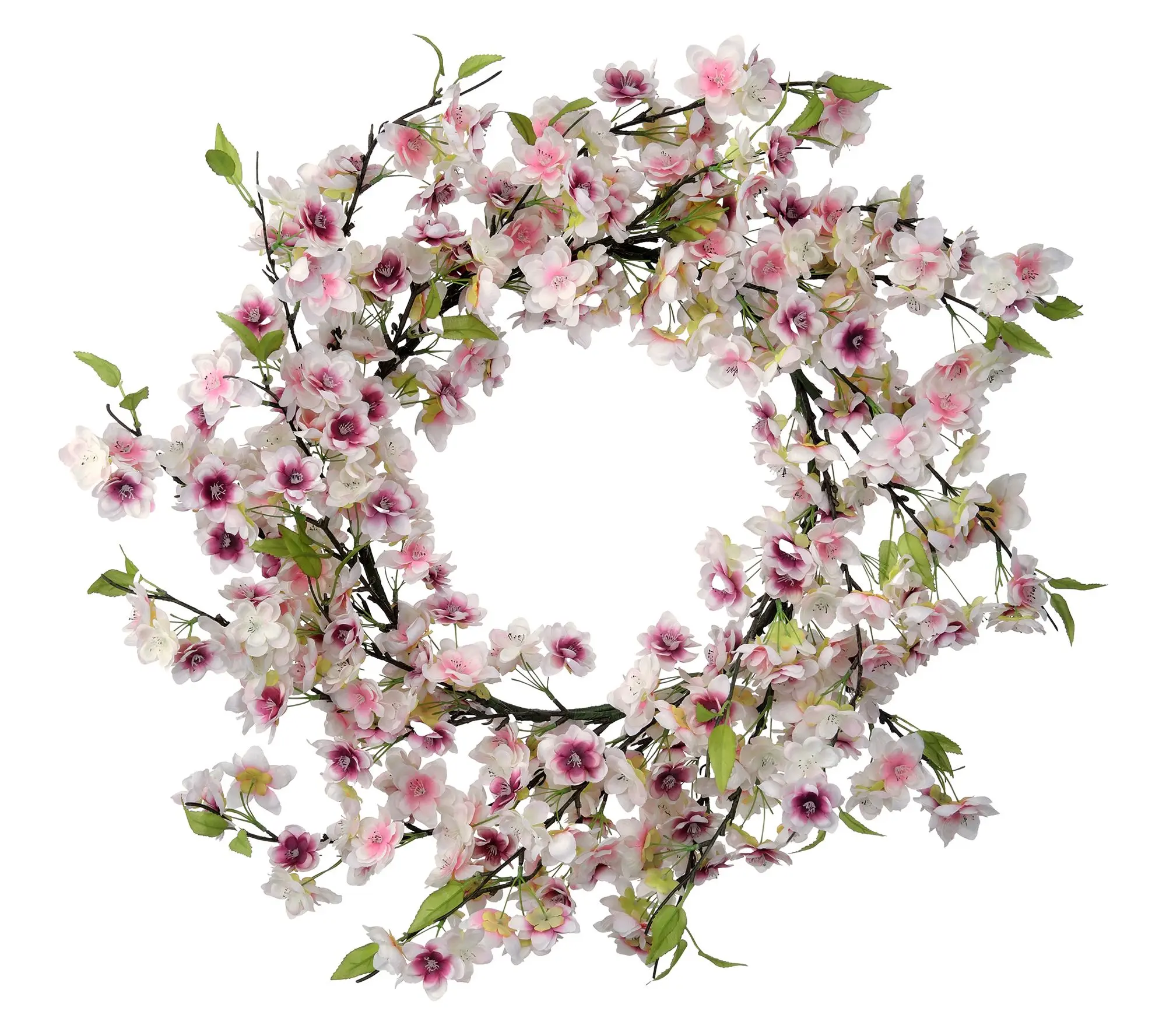 ·Faux soft-pink cherry blossoms intertwined with greenery