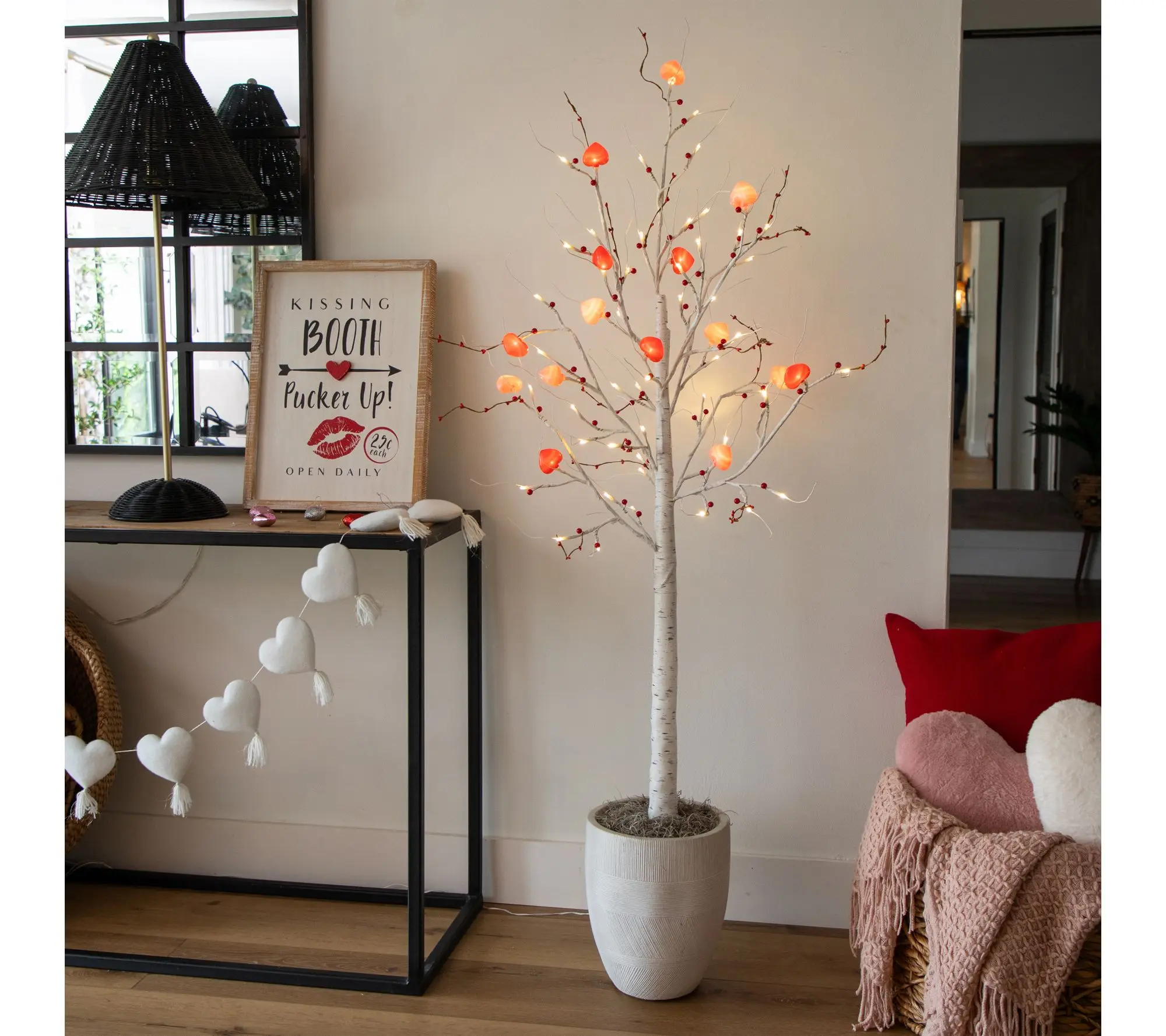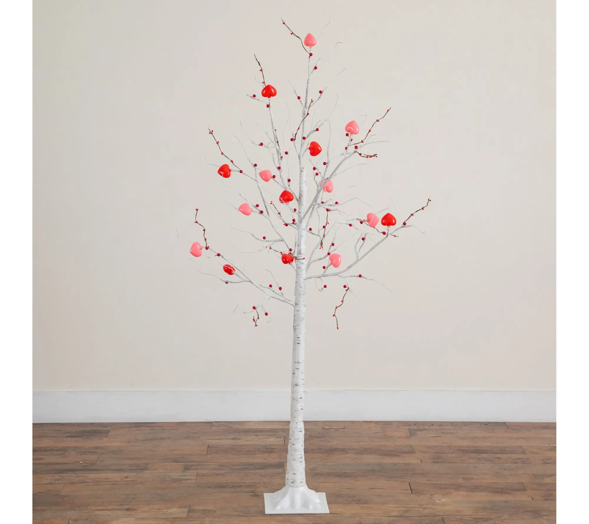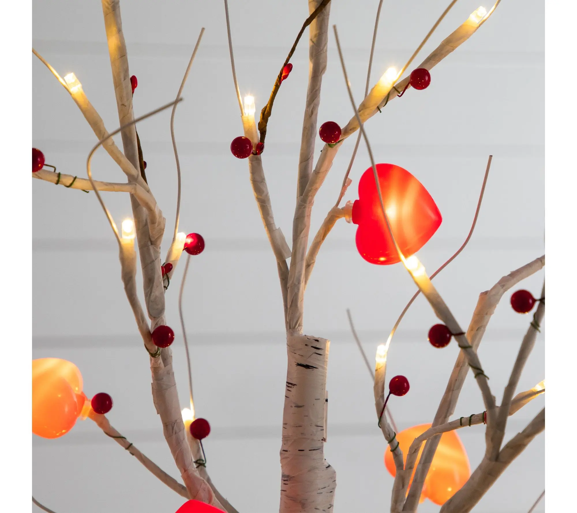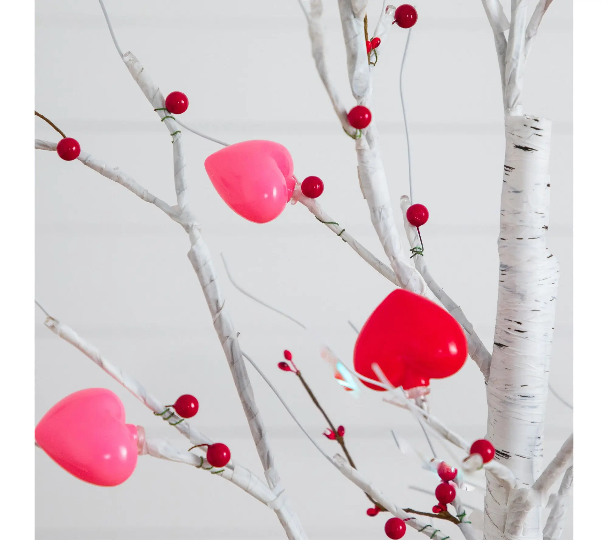 Add a woodland-inspired touch of romance to your home with this enchanting 5-Ft Pre-Lit Valentine's Day Artificial Twig Tree. Dotted with clusters of vibrant red berries and adorned with glowing red and pink heart-shaped LED lights, this tree delivers cozy charm and a gentle, festive warmth to any space. Inspired by the soft, natural look of white birch-style branches, it effortlessly brings the feeling of love indoors -- whether you style it in your entryway, living room, or office.