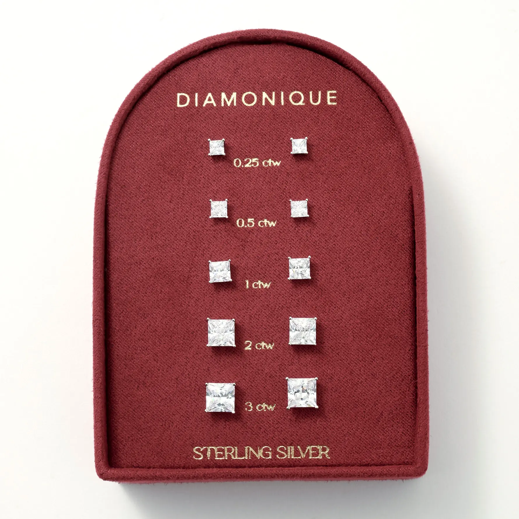Dial up the dazzle or downsize the sparkle with this set of Diamonique simulated diamond studs. A staple for any jewelry collection, five stud earring options in sterling silver let you switch up your style in seconds. With choices that span all rounds, all princess cuts, or a mix of elegant shapes, it's simple to brighten everyday looks or add major glam for evening plans.