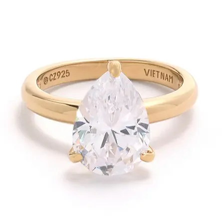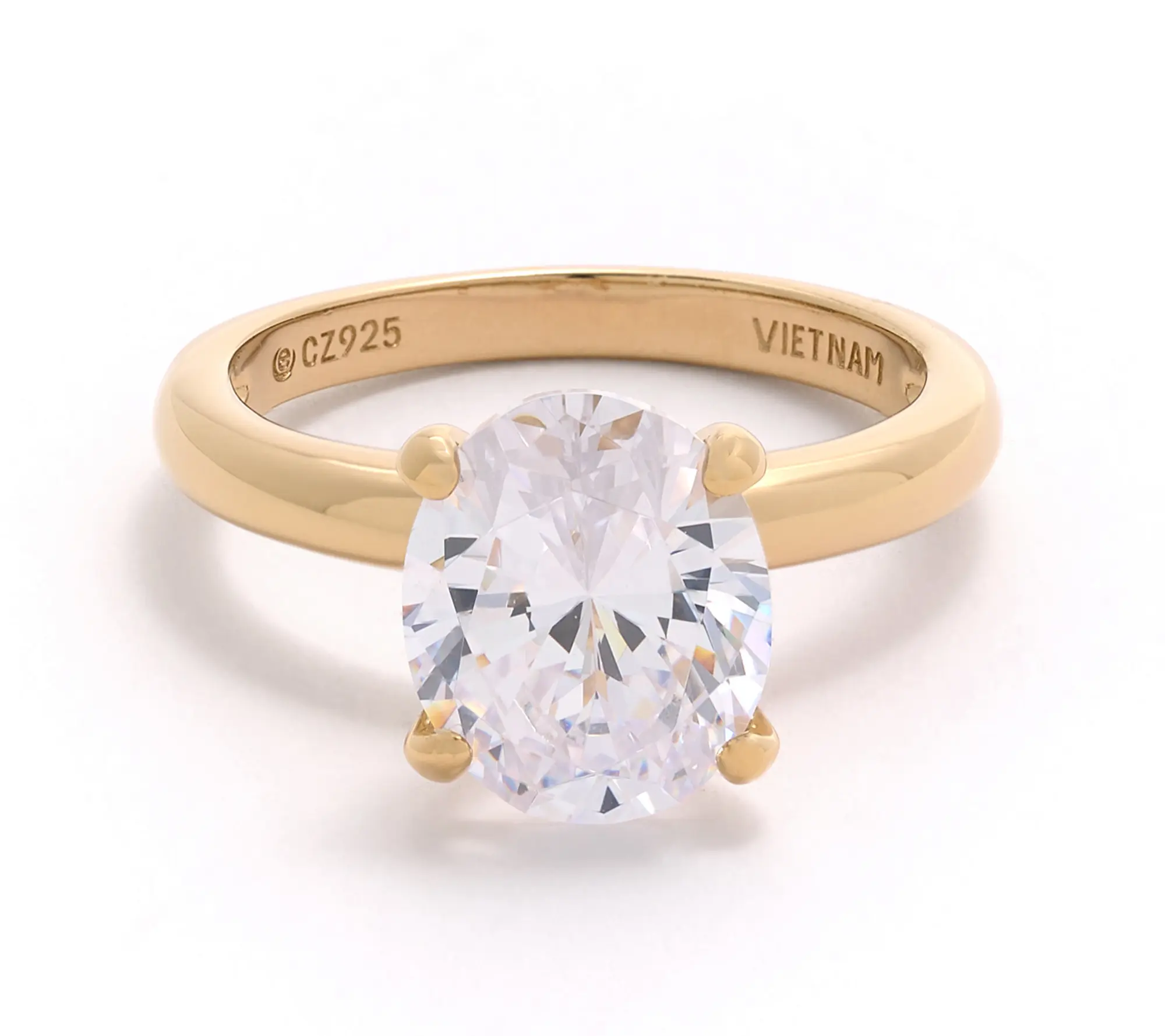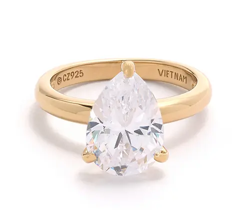 Can't-miss classic. Slip on this sparkling (and believable) solitaire ring in 14K gold-plated sterling silver to make celebrations even more memorable or add a luminous accent to your favorite everyday outfit.